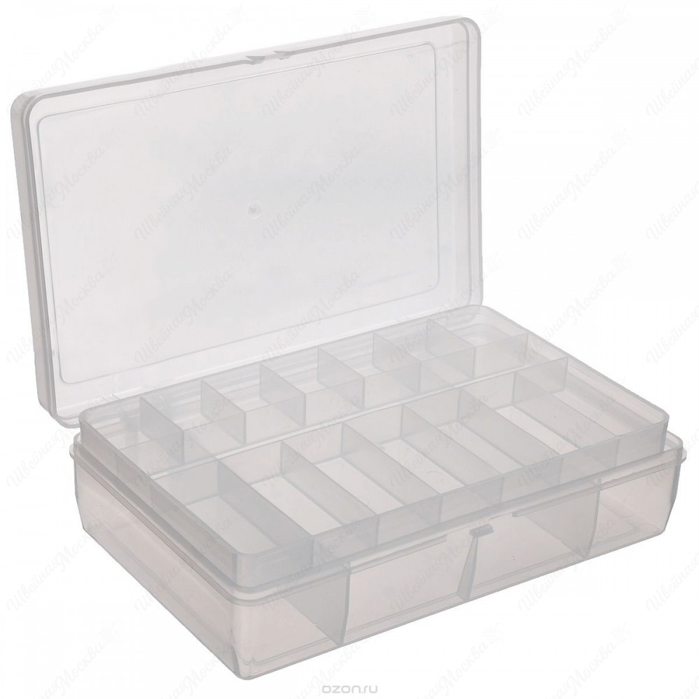 Двухъярусная коробка для мелочей "Trivol" изготовлена из высококачественного пластика. Прозрачная крышка позволяет видеть содержимое коробки.