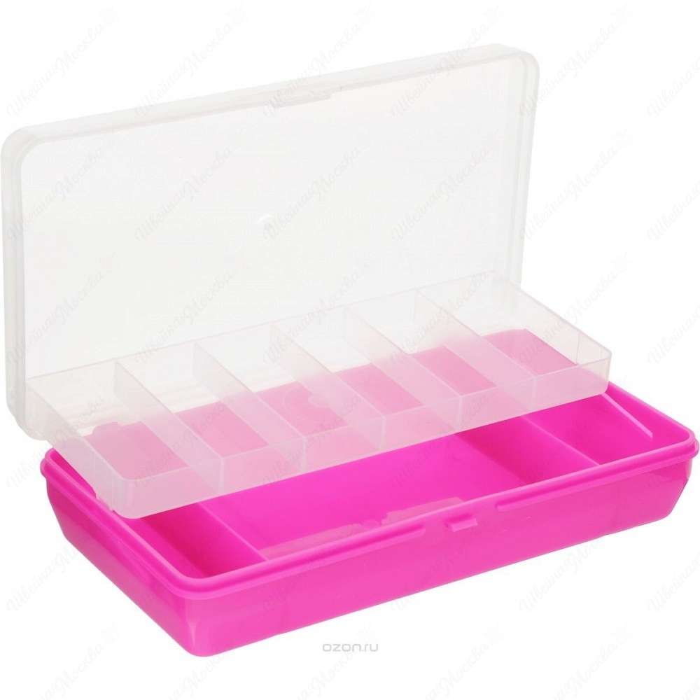 Коробка для мелочей "Trivol" изготовлена из высококачественного пластика. Прозрачная крышка позволяет видеть содержимое коробки. Изделие имеет два яруса. Верхний ярус представляет собой съемное отделение, в котором содержится 6 прямоугольных ячеек. Нижний ярус имеет 3 ячейки разного размера. Коробка прекрасно подойдет для хранения швейных принадлежностей. Удобный замок-защелка обеспечивает надежное закрывание крышки. Коробка легко моется и чистится. Такая коробка поможет держать вещи в порядке.