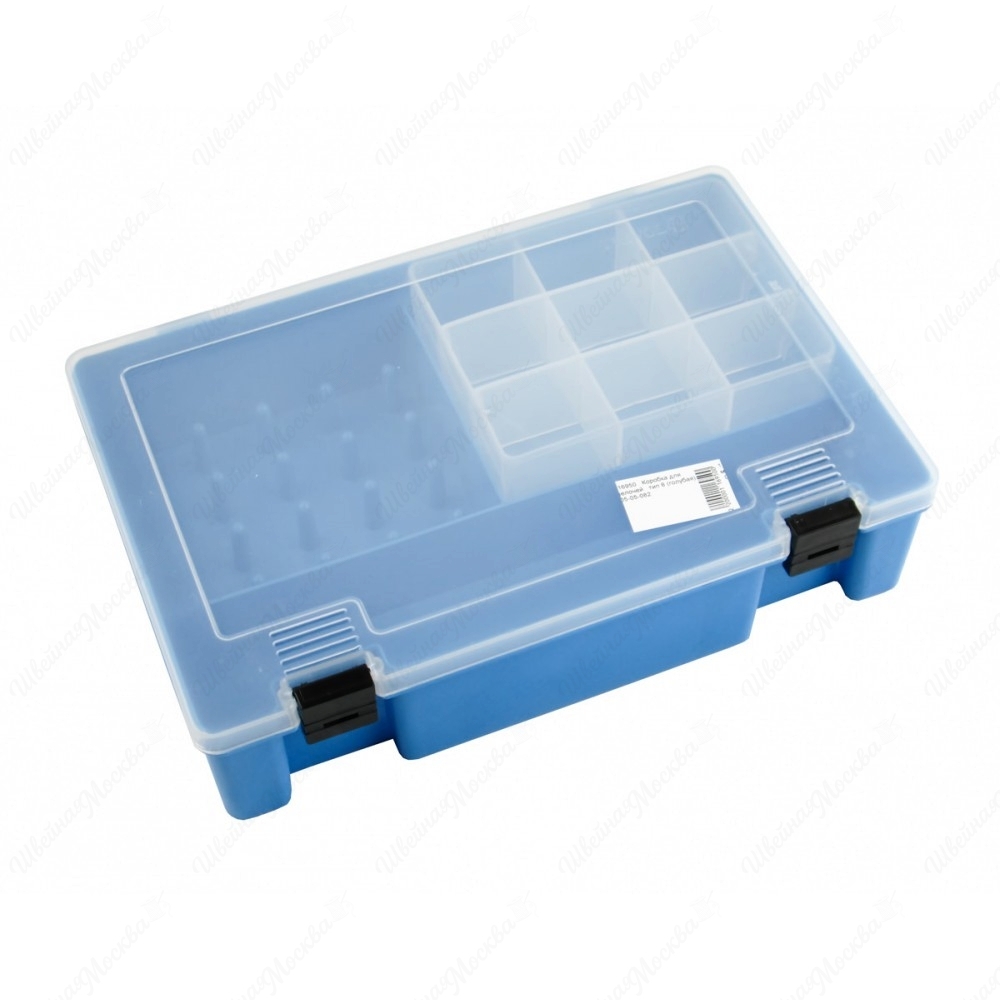 Коробка "Trivol", изготовленная из высококачественного пластика, оснащена двухъярусным отделением. Верхний ярус представляет собой съемное отделение, в котором содержится 8 ячеек. Нижний ярус выполнен в виде отделения прямоугольной формы и оснащен 5 ячейками для различных мелочей и 1 одной ячейкой для катушек. Прозрачная крышка позволяет видеть содержимое коробки, которая прекрасно подойдет для хранения швейных принадлежностей, мелких деталей и других бытовых мелочей. Удобный и надежный замок-защелка обеспечивает надежное закрывание крышки. Коробка легко моется и чистится. Такая коробка поможет держать вещи в порядке.