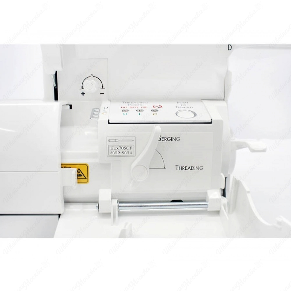 Babylock Ovation BLES 8 использует в своей работе все последние разработки знаменитого японского бренда. Функциональность и дизайн этого коверлока, а также его надёжность и удобcтво управления полностью оправдывают цену модели. Заправка нижних петлителей сделана пневматической: нити затягиваются потоком воздуха после нажатия кнопки. Такая система значительно упрощает и ускоряет подготовку машины к работе. В большинстве отзывов также отмечают наличие коленоподъёмника, расширенной рабочей поверхности (вправо от иглы) и многоточечную светодиодную подсветку. Коверлок имеет регулятор скорости шитья, вынесенный на лицевую часть корпуса. Используя 8 нитей, машина выполняет 87 операций, включая комбинированные строчки шириной 16 мм и «волновой» стежок. Натяжение нити контролируется специальными датчиками и позволяет обрабатывать разные ткани без перенастройки. Чтобы полностью раскрыть потенциал коверлока, купите дополнительные прижимные лапки и приставной столик.
