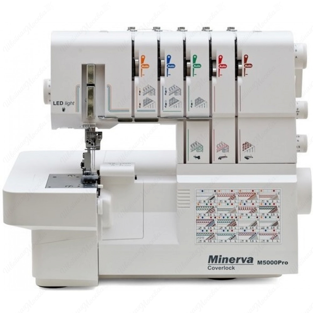 Коверлок Minerva M5000Pro — это универсальное швейное устройство, которое совмещает функции оверлока и распошивальной машины. Оно выполняет различные виды швов, автоматически настраивает натяжение нитей, оборудовано усовершенствованной светодиодной подсветкой и съёмным рукавом. Также у него есть регулятор ширины обрезки ткани, функция отключения ножа для распошива и шитья без обрезки, быстрый переход на ролевой шов и регулируемый дифференциальный транспортёр.