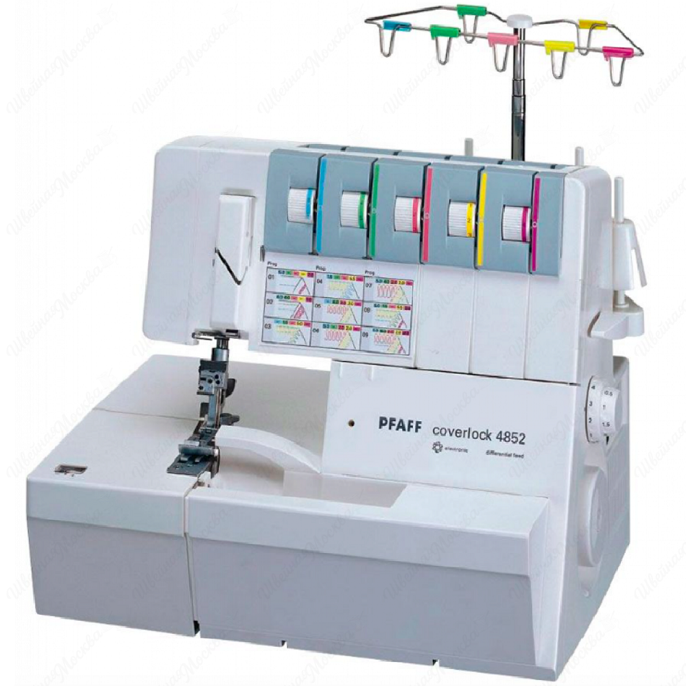 Высокотехнологичный Коверлок Pfaff 4852 идеально подходит для использования как в быту, так и производстве. Большая рабочая поверхность позволяет работать с изделиями любой длины и ширины.Pfaff 4852 - один из самых удачных современных бытовых оверлоков. Благодаря высокой мощности, грамотной конструкции и качественной японской сборке этого оверлока Вы сможете успешно работать как с легкими, так и с грубыми тканями. 5-ти (4, 3, 2-x) - ниточный оверлок + 2-х игольная 3-х ниточная плоскошовная машина (коверлок).