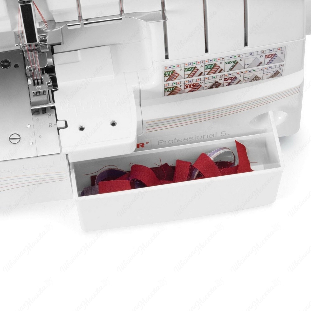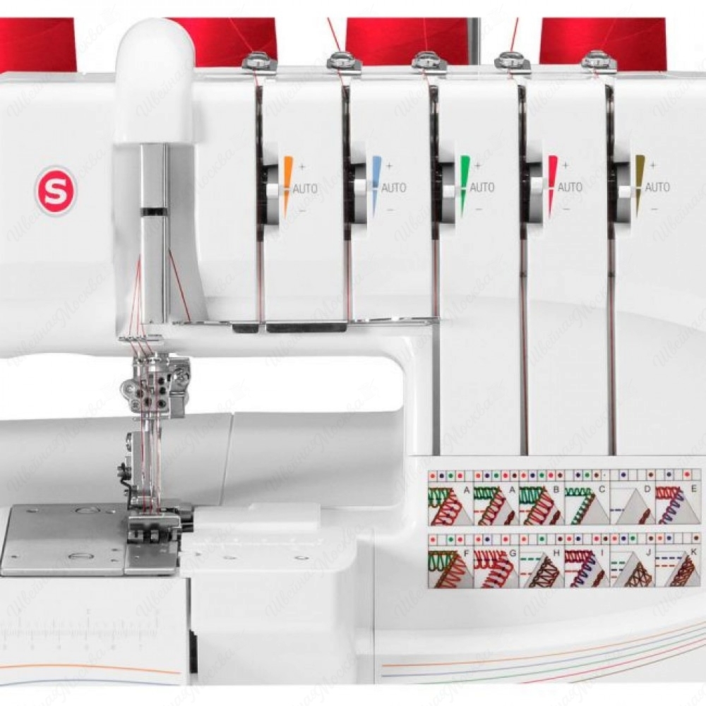 Коверлок Singer 14T968DC (Professional 5) – бытовой агрегат, объединяющий в себе четырехниточный оверлок и 3-игольную плоскошовную машину. Данная модель может работать с самыми разными видами тканей, от легчайших органзы и фатина до толстого драпа и кожи. Главными достоинствами агрегата являются высокое качество сборки, солидная мощность и эргономичная конструкция. Сила натяжения нити в процессе работы устанавливается автоматически, что позволяет прокладывать идеально ровные и аккуратные стежки длиной 4 мм. Коверлок Singer 14T968DC (Professional 5) способен делать швы в 2-5 нитей и выполнять 23 вида строчек: распошивальные, цепные, роликовые, flatlock и т.п. Длинная платформа дает возможность обрабатывать объемные изделия. На корпусе машины находятся встроенная лампа-линейка.