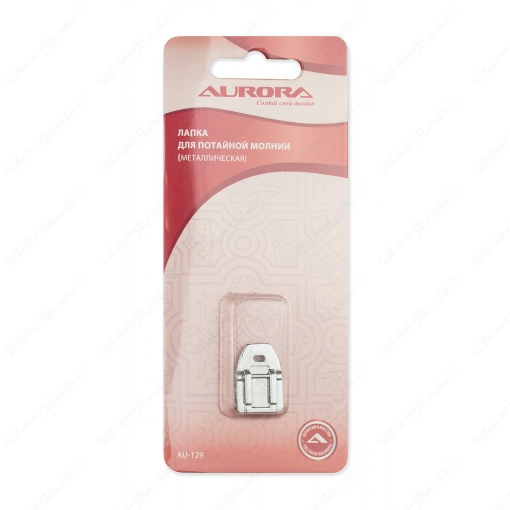 Обладающая повышенными прочностными характеристиками лапка для потайной молнии AU 129 представляет собой металлическую фигурную пластину со стандартным креплением. На машинки старого типа ее крепят с использованием адаптера. Использование аксессуара значительно упрощает процесс вшивания застежек типа зиппер в потайном варианте, позволяет создавать ровную, красивую строчку, не теряя функциональности. Лапка для потайной молнии AU 129 применяется после наметки с использованием универсального приспособления для шитья. В аксессуаре есть специализированное отверстие, через которое пропускаются зубцы застежки. Применение лапки существенно повышает функциональность бытовых швейных агрегатов.