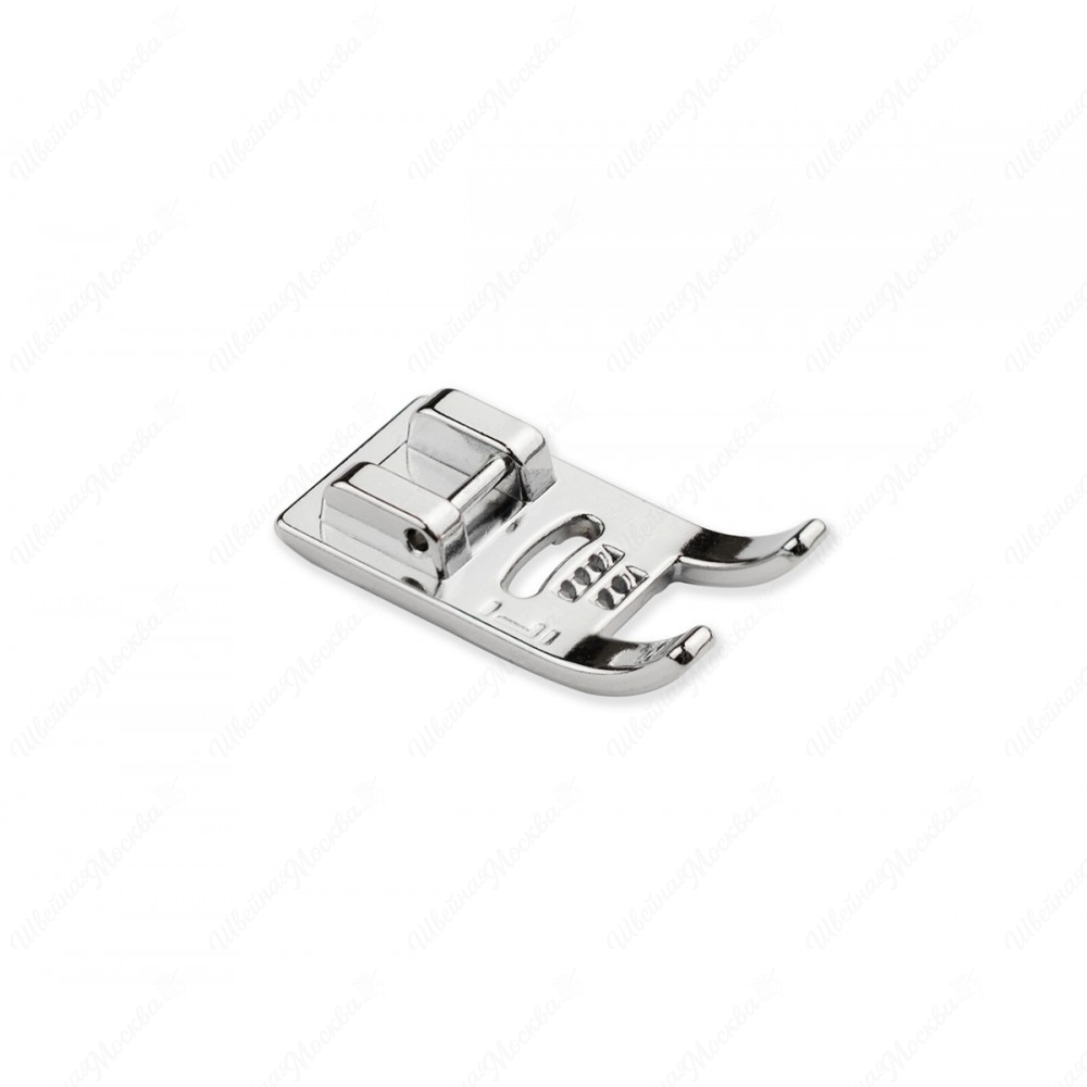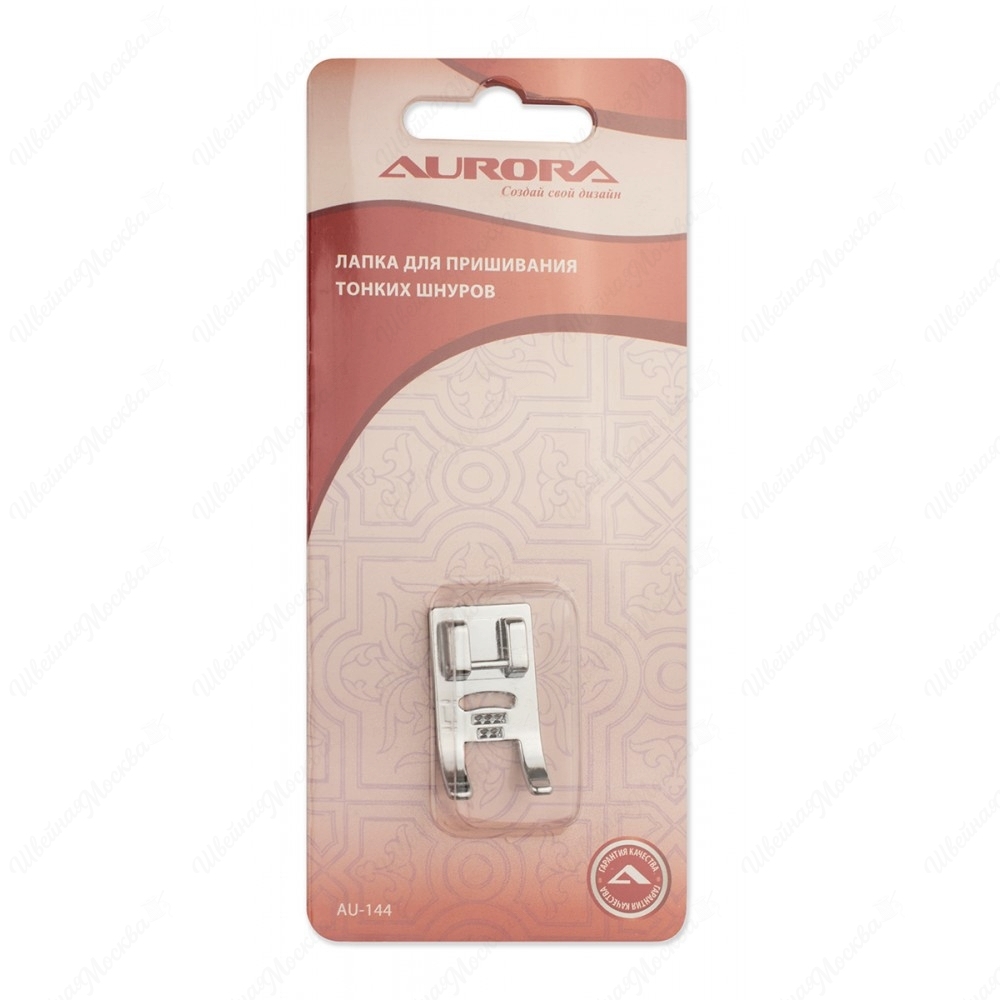 Имеющая особую конструкцию металлическая лапка для пришивания тонких шнуров AU 144 значительно облегчает работу в техниках рукоделия, где используются такого рода декоративные мотивы. Нити и тесьму с небольшим диаметром основы довольно сложно нашивать при помощи обычных прижимных элементов. Представленный аксессуар дает возможность делать это не только легко и быстро, но и варьировать направления, шить по прямой или с фигурными узорами, не сомневаясь в чистоте и качестве формируемой строчки. Лапка для пришивания тонких шнуров AU 144 адаптирована для установки на современные модели техники. Для машин более раннего выпуска рекомендуется приобрести адаптер, позволяющий приспособить их к применению с актуальными аксессуарами.