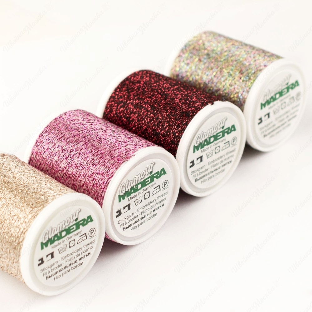 GLAMOUR № 8 - это необычайно мягкая, приятная на ощупь вискозная нить с металлическим эффектом, придающая швам, исполненным на оверлоке, благородный блеск.