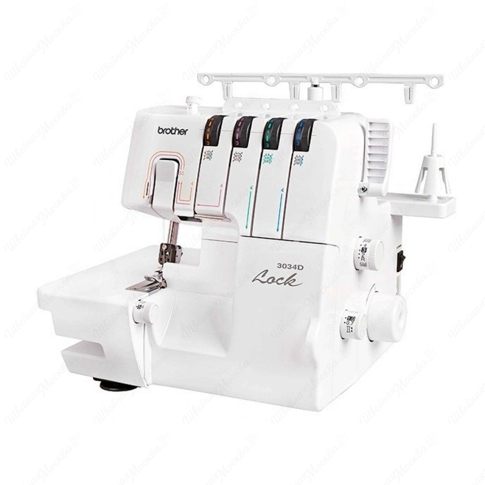 Наличие съемной рукавной платформы позволяет осуществлять оверложку фигурных и узких текстильных изделий. Регуляторы натяжения нитей расположены продольно, настраиваются вручную. Оверлок Brother Lock 3034D работает в трех или четырехниточном режиме со скоростью до 850 ст/мин, воспроизводит 6 предустановленных операций, в числе которых 4 вида строк. Дополнительными плюсами агрегата являются наличие нижнего ножа для обрезки излишков ткани, встроенной лампы накаливания, мусоросборника.