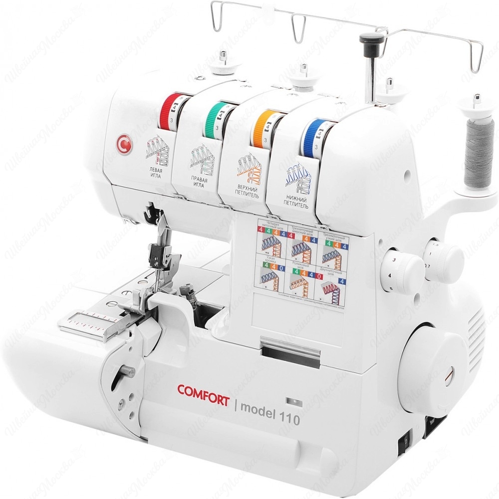 Оверлок Comfort 110 — качественная 4-х ниточная обметочная машина, которая не ограничивает в выборе тканей. Модель прошивает как тонкие сыпучие материалы, так и плотные. Вспомогательные рычаги, система Line-in и цветная маркировка позволяют легко и быстро выполнить заправку.В комплекте с Comfort 110 идет конвертор, благодаря которому получаются аккуратные 2х-ниточные швы, включая имитацию плоской строчки. Регуляторы расположены на удобном для глаз уровне. Достаточно выставить нужные значения, чтобы выполнить безупречную обметку на любой ткани.Отличная функциональность и доступная цена — преимущества оверлока Комфорт 110. Он подходит как для домашнего пользования, так и для небольших ателье. Рекомендуем приобрести специальные лапки, которые значительно упростят выполнение многих операций.