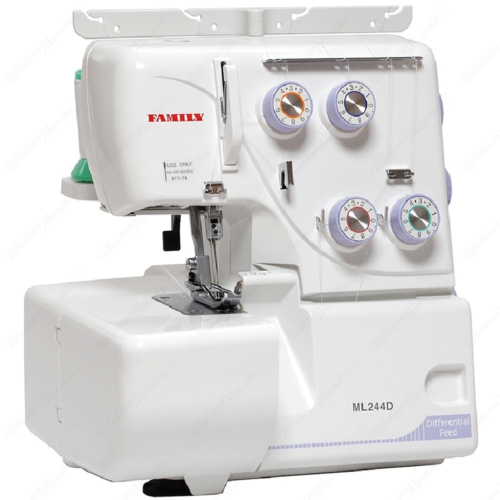 Оверлок Family 244D — модель начального уровня, который выполняет обработку края на 3х и 4х нитях. Модели этого бренда разработаны в Японии и отличаются разумной ценой и продуманным управлением. В набор операций включены строчки имитации плоского шва разной ширины, а также ролевой шов (3х ниточный). Быстро заправить нити Вам поможет цветовая маркировка на корпусе и подробное описание в инструкции. Чтобы работать с материалами разной плотности и эластичности, оверлок оборудован дифференциальной подачей и возможностью настройки силы давления лапки.