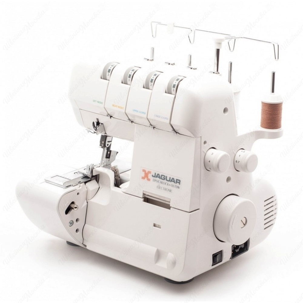 Оверлок Jaguar 087DW представляет собой простой в эксплуатации аппарат механического типа, который возможно использовать в домашних условиях и профессиональной сфере. Машина умеет работать как с 3, так и 4 нитями и выполнять следующие типы строчек: стандартные плоские, узкие, роликовые, эластичные, вподгибку. Высоту лапки у оборудования можно регулировать – поднимать на высоту до 6 мм, что позволяет обметывать края у изделий из тонких и средних по толщине тканей. Стрейчевый и трикотажный текстиль машина обрабатывает очень аккуратно, без растяжения за счет системы дифференцированной подачи материала. Оверлок Jaguar 087DW отзывы имеет самые положительные благодаря наличию многих дополнительных опций. Например, он оснащен функцией отключения выдвижного ножа и системой «нижний нож» – для обрезки излишков ткани по краю.