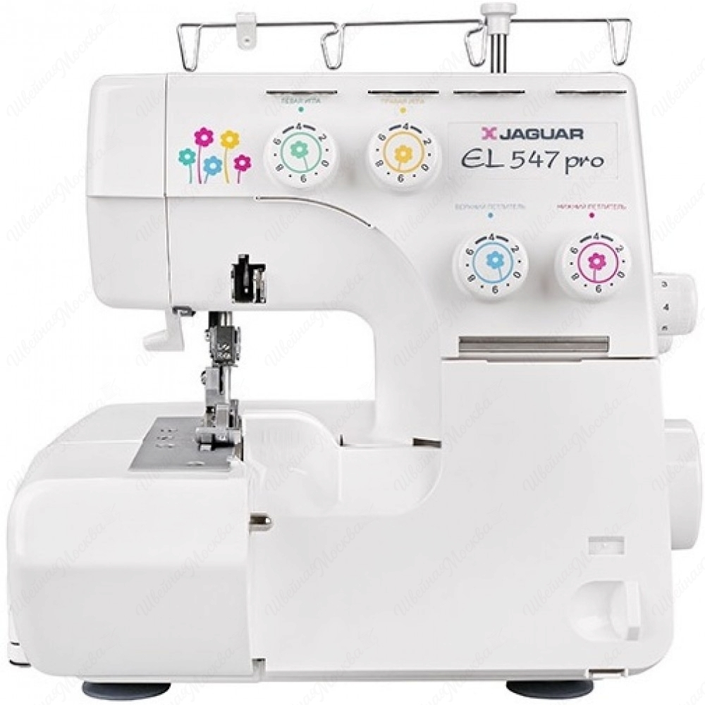 На панели оверлока Jaguar EL 547pro нанесена схема, на которой каждая нить маркируется своим цветом, что облегчает процесс заправки. Обрезки ткани во время работы собираются в специальном мусоросборнике, закреплённом на корпусе оверлока.