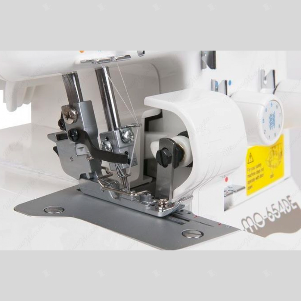 Основное преимущество данной модели заключается в наличии устойчивых к износу ножей с приводом, именно с их помощью получаются аккуратные и ровные разрезы. Немаловажное значение имеет функция дифференциальной подачи материала, которая позволяет с полным комфортом обрабатывать изделия из деликатных и тянущихся тканей. Потребляемая мощность Juki MO 654DE составляет 105 Вт, а максимальная скорость шитья достигает 850 стежков в минуту. В его комплектацию входят пара отверток, набор игл, нитевдеватель, масленка, противопыльный чехол и множество других полезных аксессуаров.