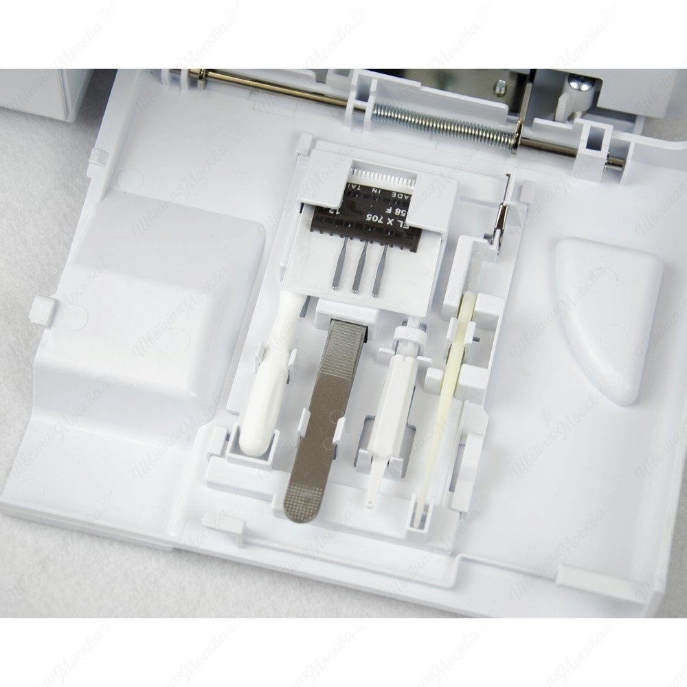 Для комфортной обработки узких мест, таких как рукава, горловины или низ изделия, предусмотрена рукавная платформа. В комплекте с оверлоком идёт лоток для обрезков, помогающий поддерживать порядок на рабочем месте.