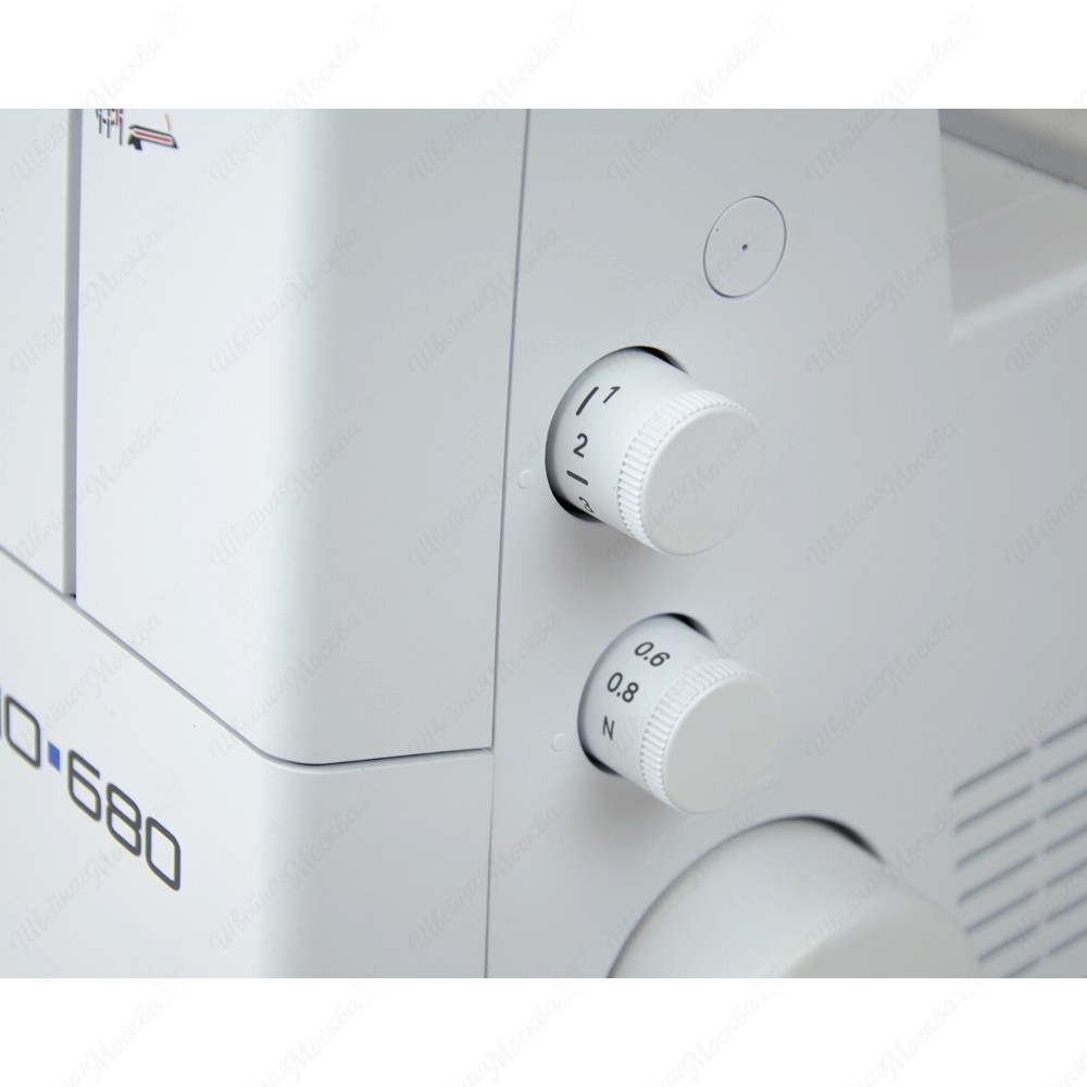 Juki MO-680 оснащён полезными опциями, облегчающими достижение идеального результата. Регулятор давления лапки позволяет контролировать плотность стежков на ткани, а дифференциальная подача материала обеспечивает ровные и аккуратные швы даже при обработке материалов.