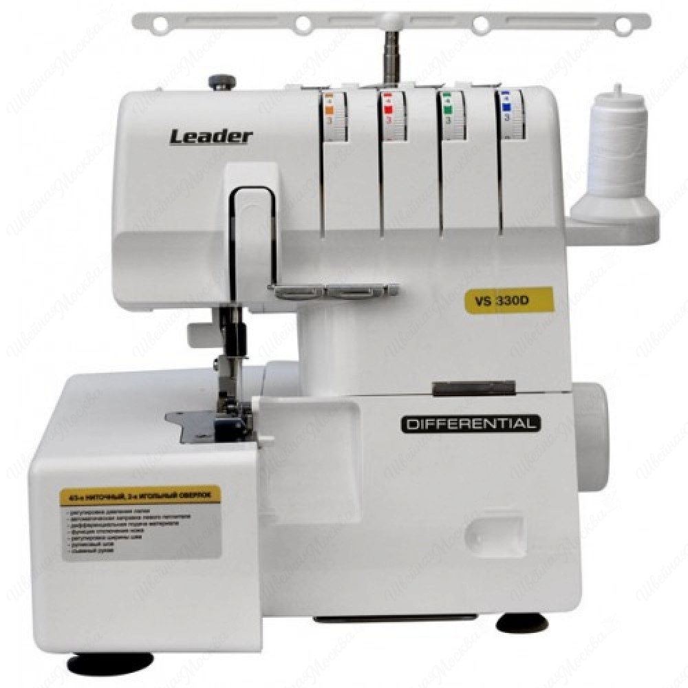 Оверлок LEADER VS 330D - модель для применения в быту или в малом производстве, работающая с тремя или с четырьмя нитями и создающая 1200 стежков в минуту. Он одинаково хорошо справляется со сшиванием тонких и эластичных шифоновых тканей, выполняя незаметный роликовый шов, и прочных джинсовых. Оверлок имеет механизм дифференциальной подачи материала и дает возможность растягивать или собирать ткань при шитье, что особенно важно при обработке трикотажа.