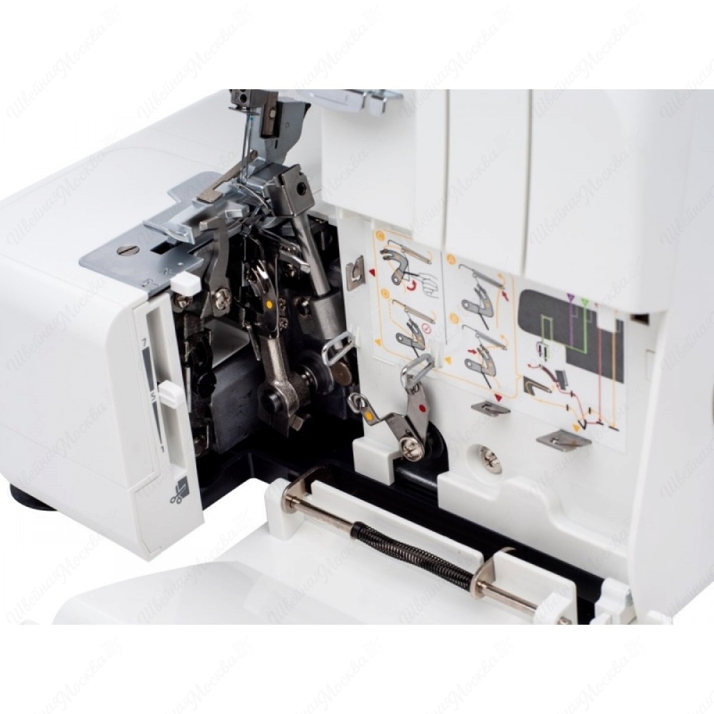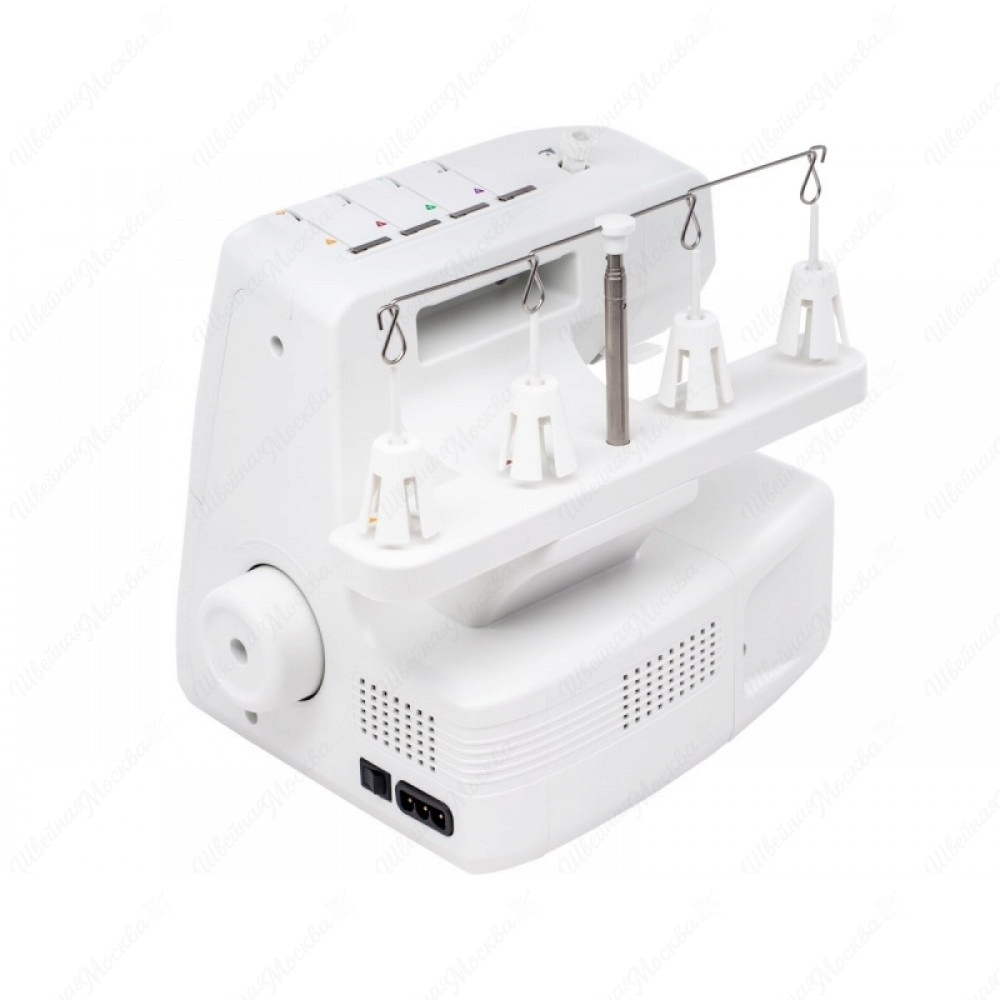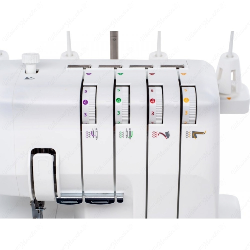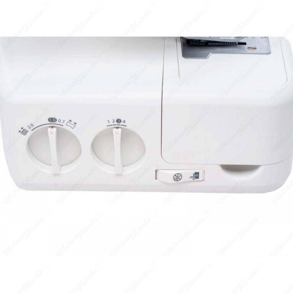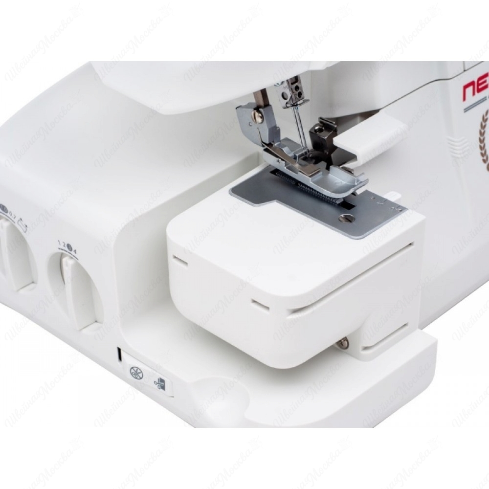 Necchi 4455D имеет пластиковый корпус эргономичной формы, на поверхность которого нанесены обозначения, облегчающие заправку нитей. Он способен выполнять 12 операций, все они отвечают за создание различных 2/3/4-ниточных швов (трикотажных, плоских, роликовых и т.д.). Максимальная скорость его работы достигает 1100 стежков в минуту, а потребляемая мощность не превышает 100 Вт, что свидетельствует об энергоэффективности. Нож у данного оверлока расположен снизу, а регулятор натяжения нитей – фронтально. Кроме того, он оборудован съемной рукавной консолью и светодиодной подсветкой.