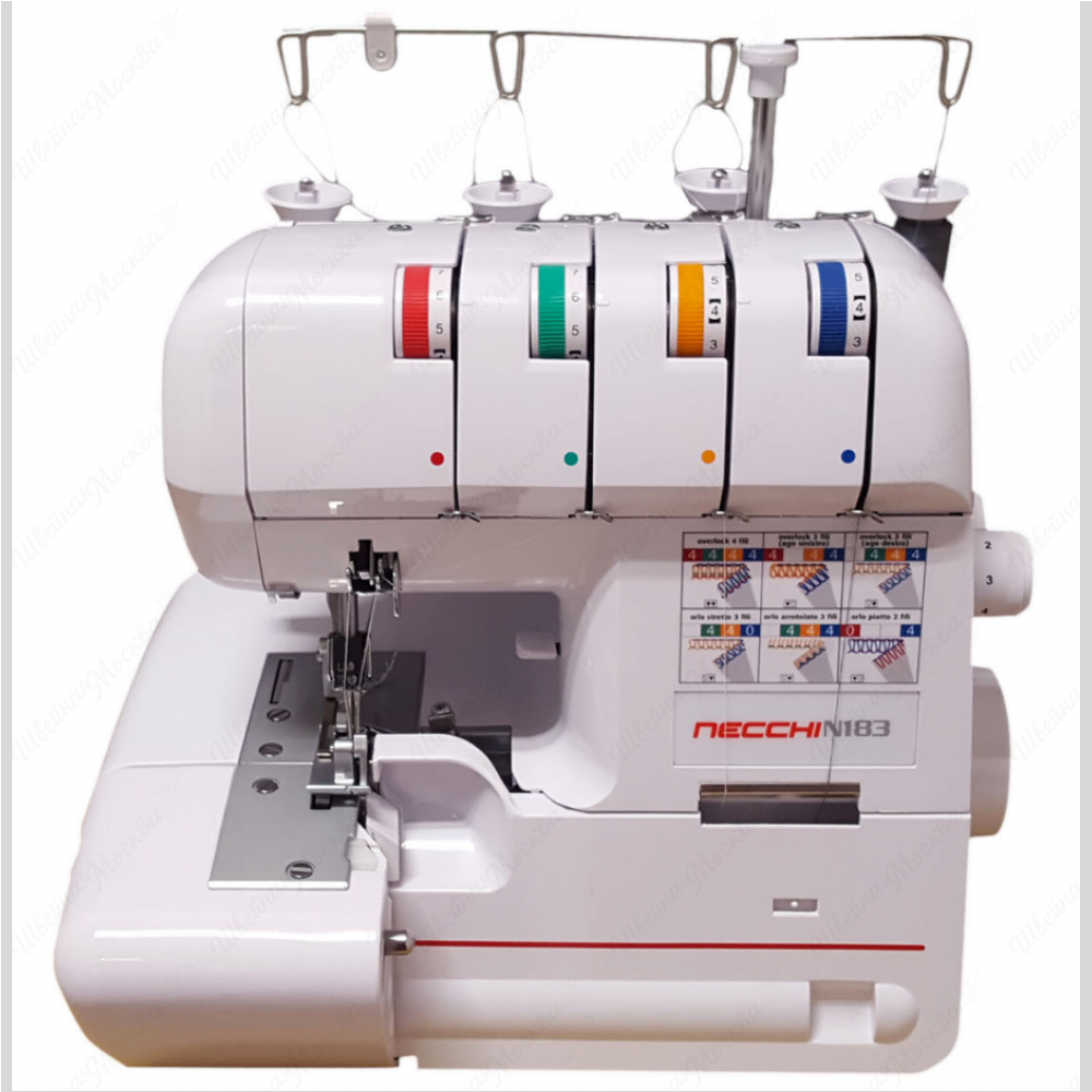 Оверлок Necchi N183 — это качественная швейная машина, предназначенная для обработки краёв текстильных изделий. Она оснащена четырьмя нитями и выполняет семь различных операций, включая трикотажный стрейч, плоский трёхниточный шов, узкий трёхниточный шов и роликовый трёхниточный шов.