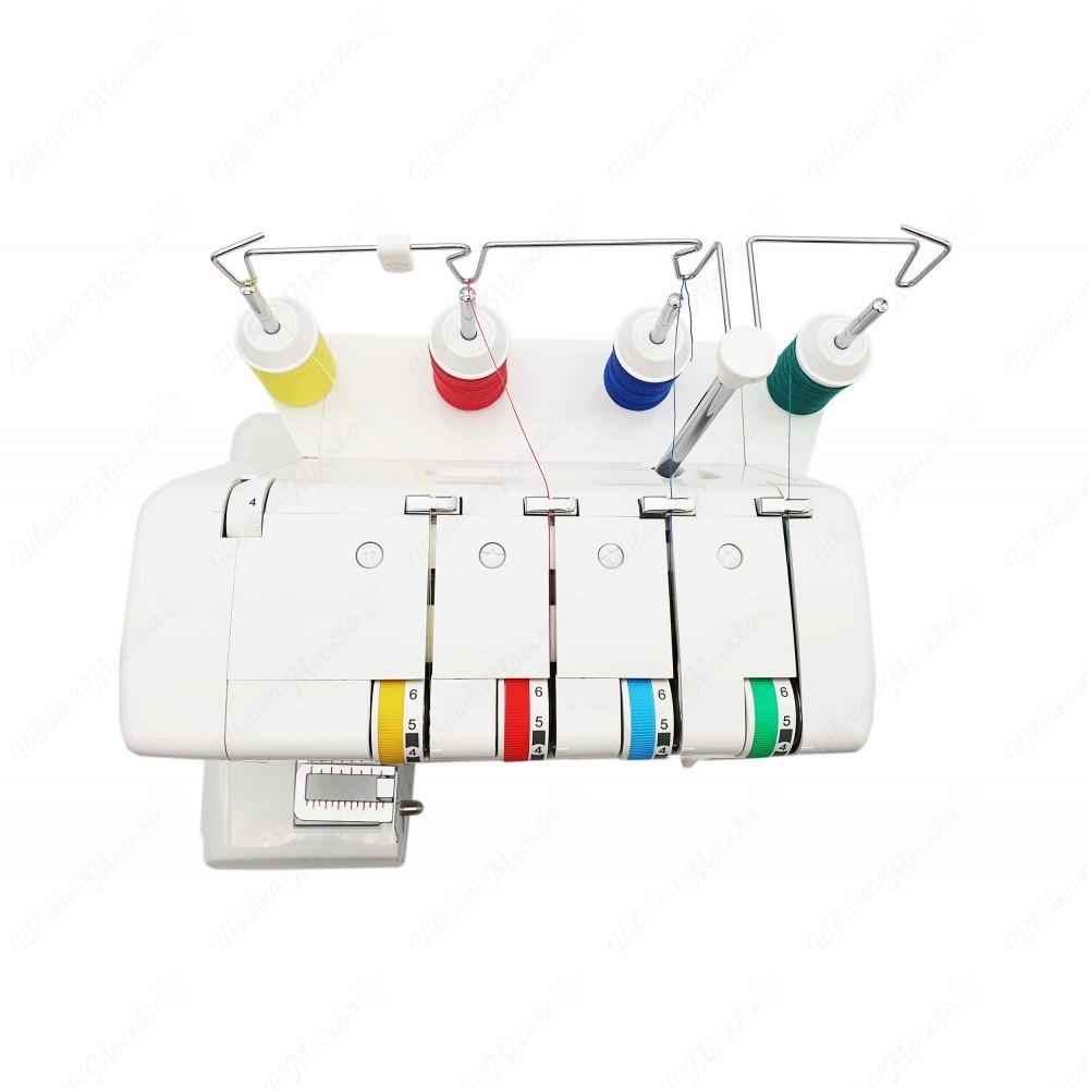 В комплекте с оверлоком идут аксессуары, такие как конвертор верхнего петлителя, набор игл, щёточка для пыли, отвёртка, гаечный ключ, запасные ножи, мусоросборник, держатель бобин, подставка под катушку, ограничитель для катушек и пинцет.