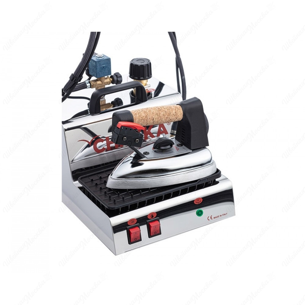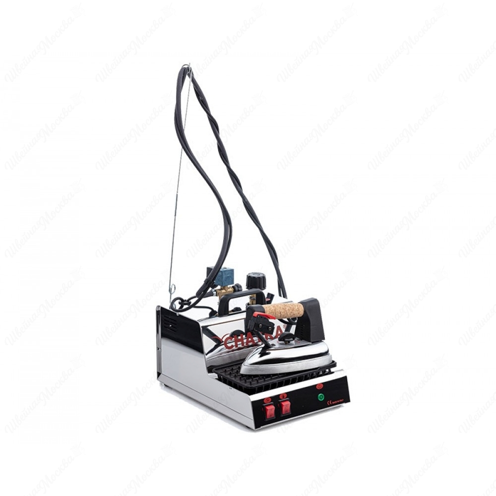 Парогенератор CHAYKA PROFI-3 подходит для использования как в ателье, так и дома. Сухой пар подаётся под высоким давлением 5 бар, что позволяет легко разглаживать даже самые сложные ткани. Отличительной особенностью является возможность раздельного включения бойлера и утюга, а также наличие индикатора готовности пара и отсутствия воды в бойлере. Подача пара регулируется с помощью магнитного электроклапана. Благодаря мощному паровому удару вы сможете уверенно выполнять вертикальное отпаривание. Функция вертикального отпаривания позволит разгладить пиджак на вешалке или занавески, а также идеально подойдёт для изделий из велюра и бархата. Утюг имеет удобную ручку из пробки.