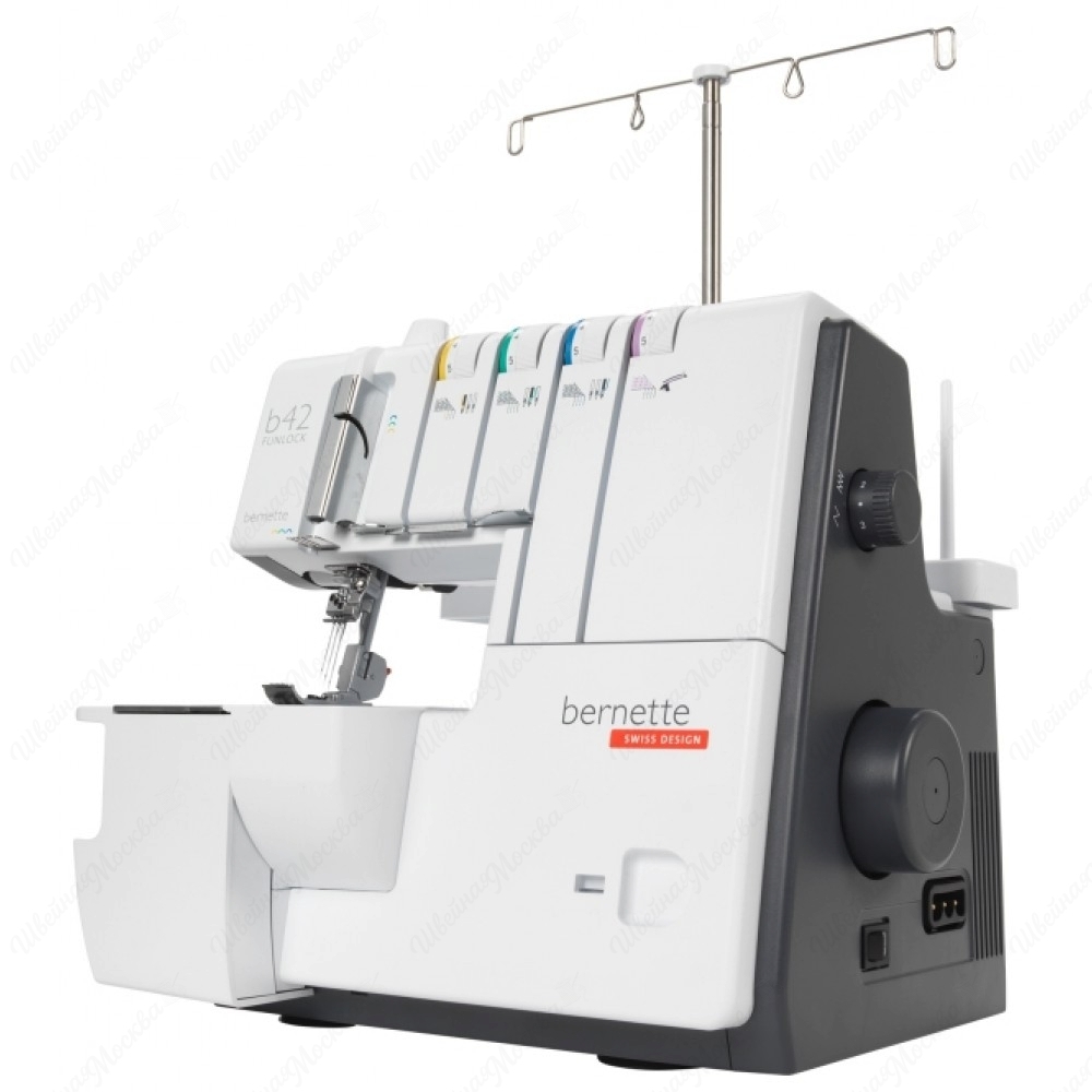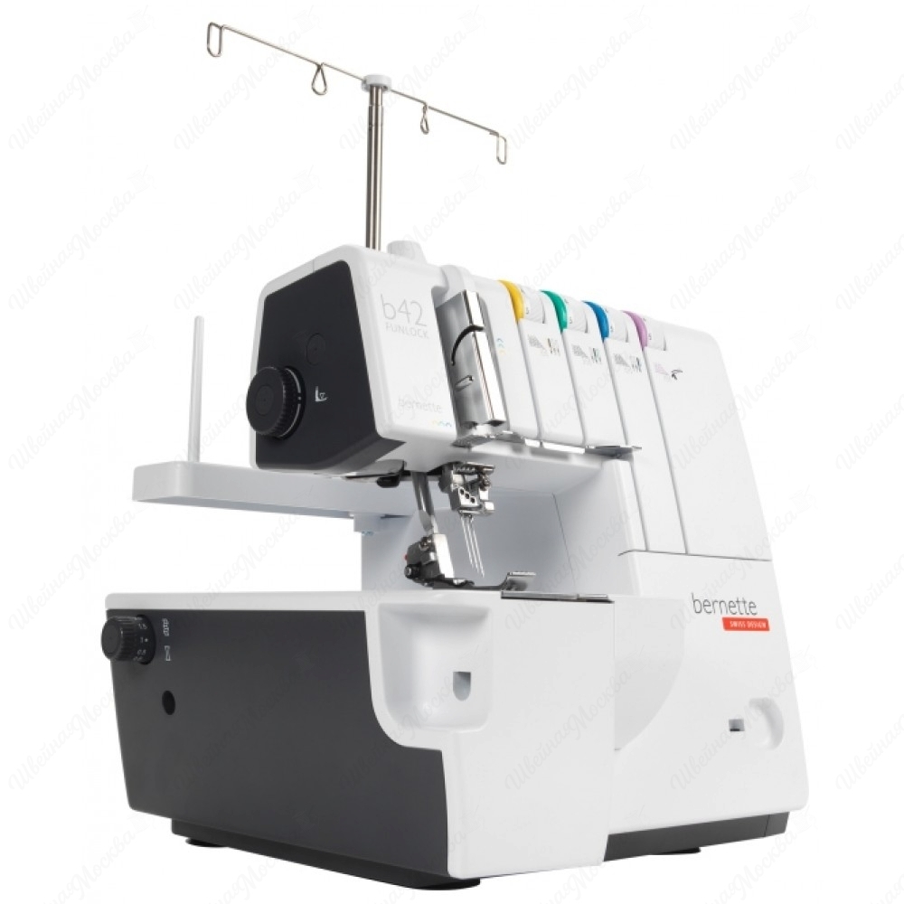 Широта возможностей распошивальной машины Bernina Bernette Funlock B42 приятно поражает. Это устройство умеет не только аккуратно обрабатывать низ, рукавные проймы и горловины изделий из эластичных тканей, но также втачивать ленты и кружево, пристрачивать декоративные элементы и т.п. Всего в арсенале модели предусмотрено 7 операций. Машина Bernina Bernette Funlock B42 распошивального типа может шить в 4 нити и прокладывать усиленные строчки на тканях любой плотности. Ее легко заправлять благодаря специальному механизму вдевания нитей в иглу и петлители. Оборудование снабжено встроенной лампой на корпусе, что делает работу с ним еще более комфортной.