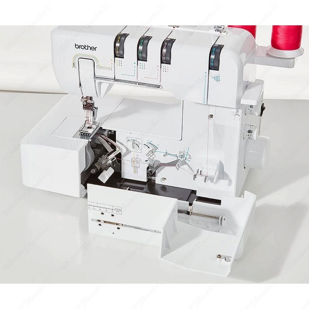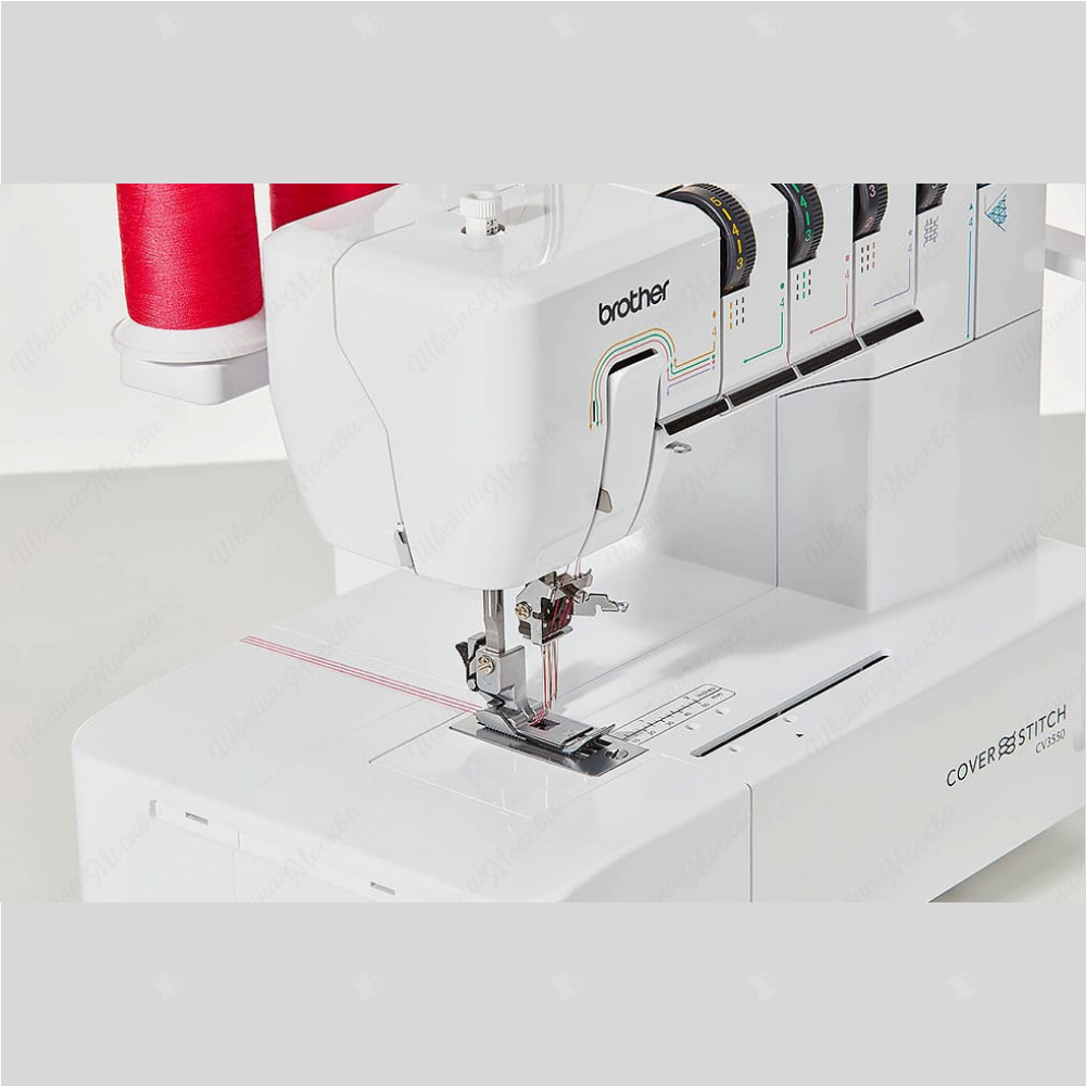 Brother CV 3550 воспроизводит 7 операций и работает с 5-ю нитями. Функция упрощенной заправки нити, которой снабжено устройство, значительно ускоряет данный процесс, увеличенное рабочее пространство позволяет заниматься шитьем с полным комфортом, а светодиодное освещение, расположенное на корпусе машины, снижает нагрузку на глаза при шитье в темное время суток. Благодаря регулятору, отвечающему за давление лапки, и функции дифференциальной подачи материала, удается достигнуть наивысшего качества строчек. Конструкцией предусмотрено наличие рукавной платформы, облегчающей процесс обработки мелких и узких деталей одежды.
