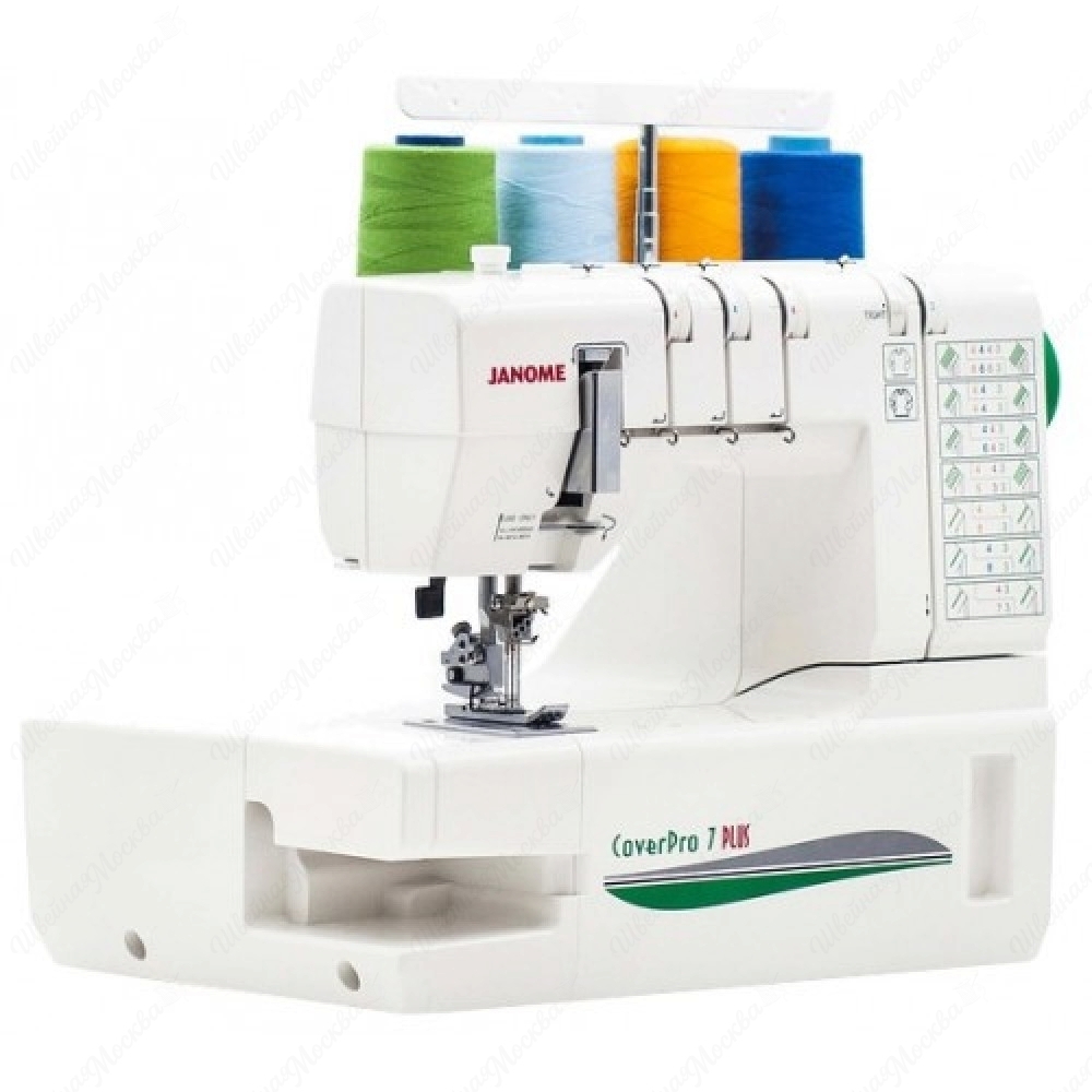 Фирменная японская распошивальная машина Janome Cover Pro 7 Plus с цветной кодировкой расположения элементов, удобными подсказками и съемной рабочей платформой рукавного типа станет лучшим приобретением для профессионального и любительского рукоделия. Бытовой агрегат выглядит современно, имеет регулируемую в автоматическом режиме систему контроля за процессом натяжки нитей, допустимое количество которых – 4.