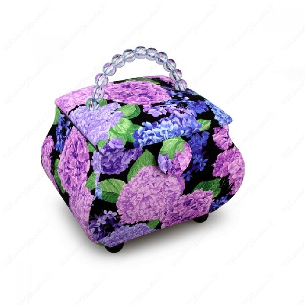 Шкатулка очень удобна в использовании, и к тому же станет украшением вашего домашнего интерьера! Размер: 26,5x19x22 см. Оформление корпуса: ткань. Ручка: из бусин. Ткань: хлопок 100%. Наполнение: пластиковый поддон с разделителями