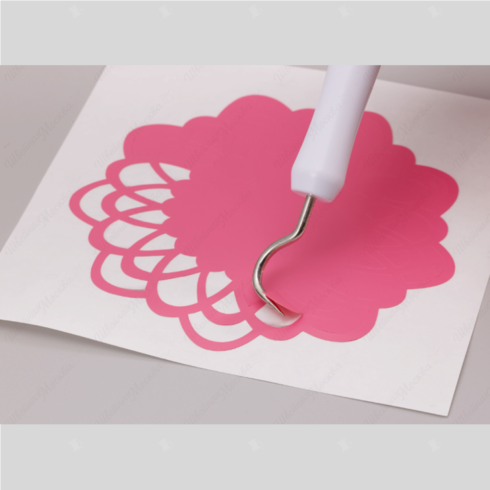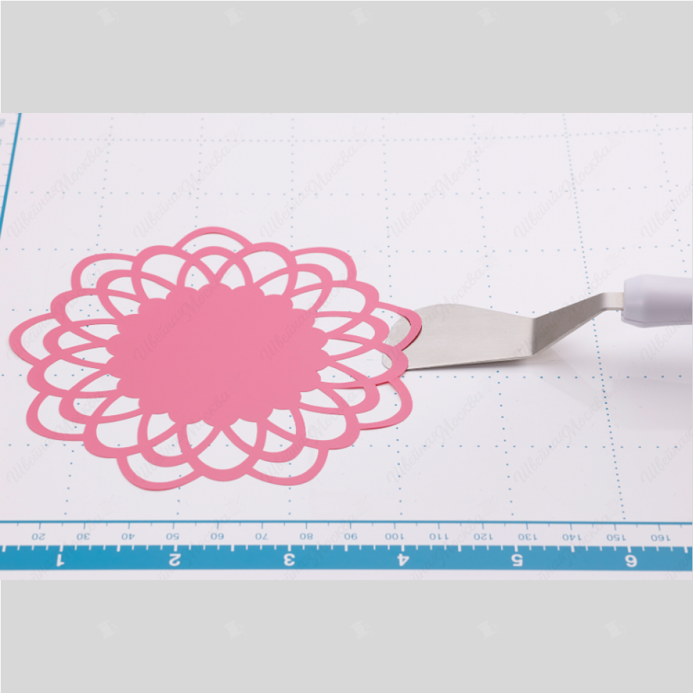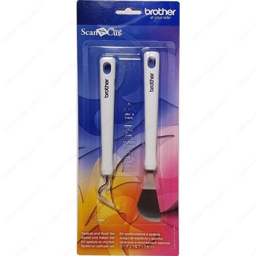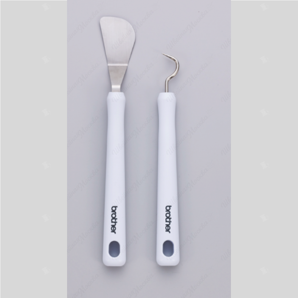 Комплект включает в себя шпатель и монтажный крючок, предназначеные для отделения мелких деталей от коврика ScanNCut.