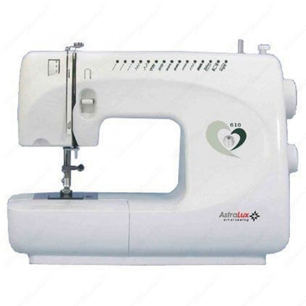 AstraLux 610 — это лёгкая и мобильная электромеханическая швейная машина с вертикальным качающимся челноком. Она предлагает 13 различных видов строчек, включая прямую, оверлочную, потайную подшивку низа и прямую строчку со смещением влево. Максимальная скорость шитья составляет 400 стежков в минуту, а максимальная длина и ширина стежка — 4 мм и 5 мм соответственно. Модель оснащена светодиодной подсветкой рабочей зоны и функцией реверса для закрепления строчки.