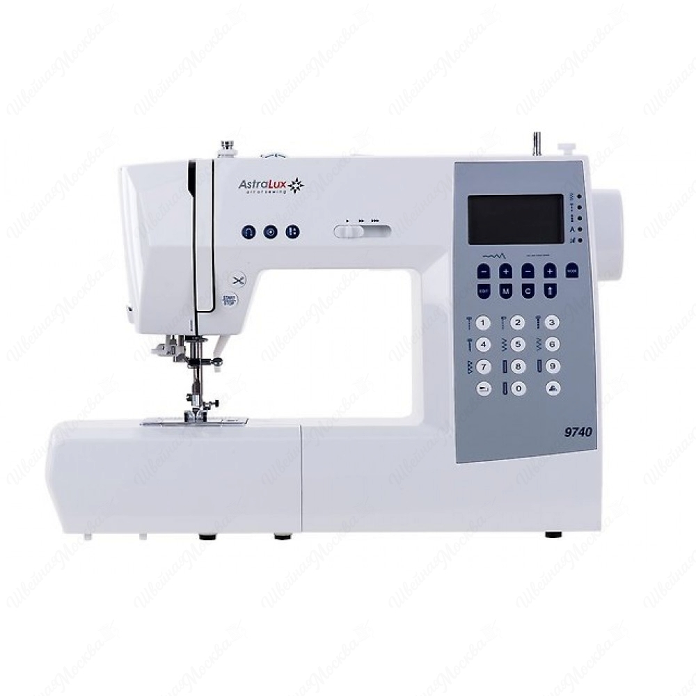 Отличительной особенностью машины является наличие монохромного ЖК-дисплея, который отображает не только данные о ходе работы, но и анимационные подсказки встроенного советника. В ее арсенале имеется более 320 операций, 13 из них отвечают за автоматическое выметывание петель, а остальные за создание различных типов строк и 2-х видов монограммных шрифтов. При помощи Astralux 9740 можно обработать любые типы тканей, в том числе грубые и деликатные, кроме того, имеется возможность комбинирования мотивов. Дополнительный комфорт при шитье обеспечивают функция удлинения раппорта строчек, зеркальное отображение, регулятор давления лапки, нитеобрезное устройство, рукавная платформа и яркая подсветка.