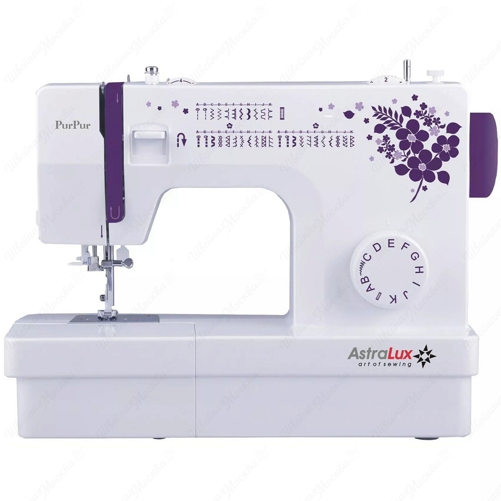 В память AstraLux PurPur заложено 29 операций, которые отвечают за создание различных строк, помимо этого имеется возможность выметывания бельевых петель в полуавтоматическом режиме. Данная модель оборудована качающимся челноком вертикального типа, который не только обеспечивает бесшумное шитье, но и значительно повышает качество выполняемых стежков. За дополнительный комфорт отвечают яркая подсветка рабочей зоны и ручное устройство обрезки нити.