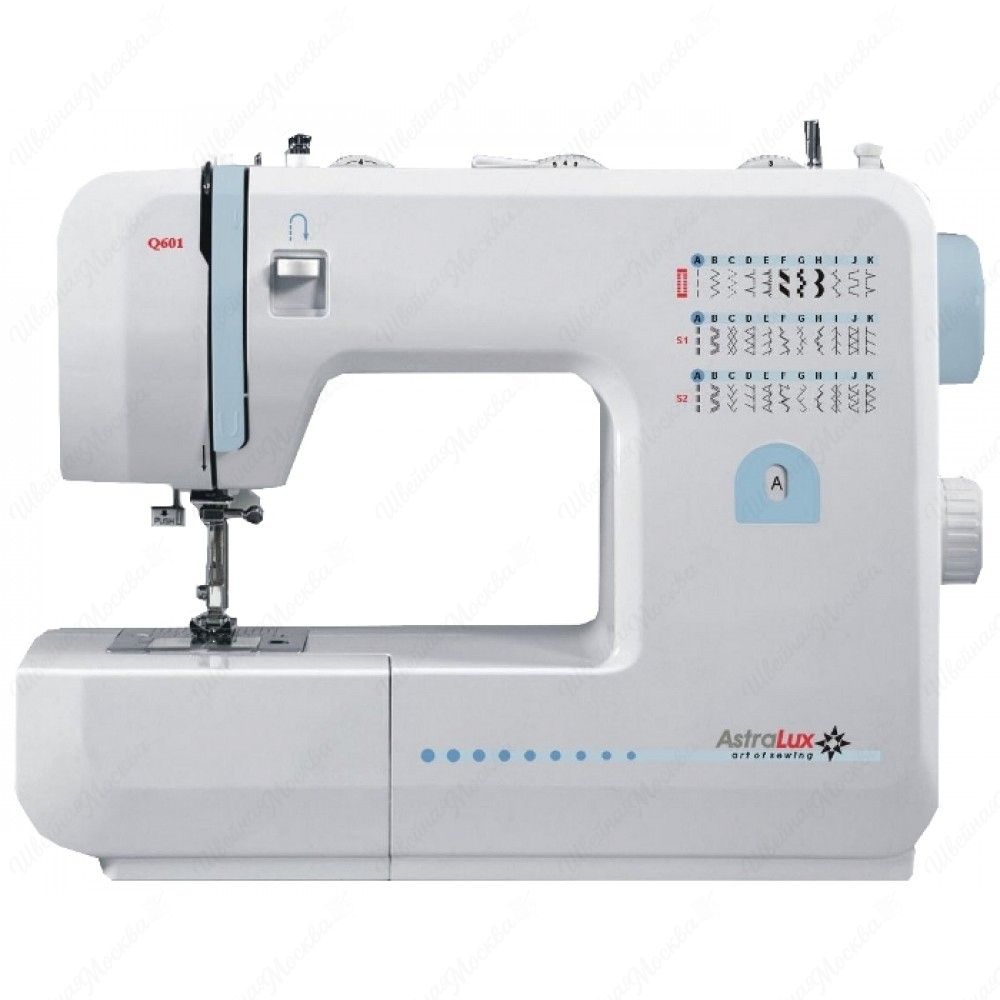 Главной особенностью AstraLux Q601 является ротационный челнок горизонтального типа, который отвечает за плавный, тихий ход и существенно упрощает процесс заправки шпули. Арсенал возможностей машины состоит из 35 операций, отвечающих за создание различных видов строк и выметывание бельевой петли в автоматическом режиме. Выбор нужной опции осуществляется через переключатели, расположенные на верхней части корпуса. Дополнительный комфорт во время шитья обеспечивают встроенная подсветка, кнопка реверса, регулятор давления лапки, нитевдеватель и съемная рукавная платформа.