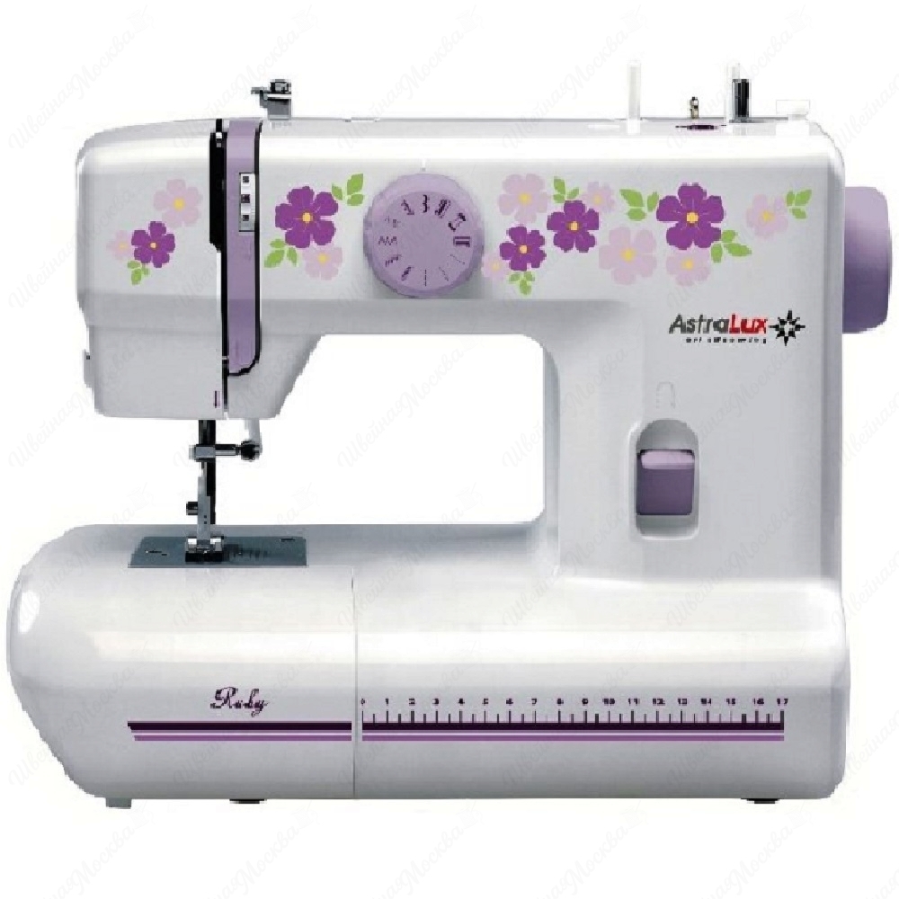 Корпус AstraLux Ruby сделан из прочного пластика, который обладает не только шумопоглощающим эффектом, но и значительно снижает общий вес устройства. Арсенал возможностей аппарата представлен в виде 10 операций, отвечающих за создание самых необходимых типов строк и выметывание одного вида бельевых петель в полуавтоматическом режиме. Максимальная скорость шитья у данной модели составляет 450 стежков в минуту, а потребляемая мощность не превышает 70 Вт. Дополнительный комфорт при работе обеспечивают встроенная подсветка, кнопка реверса, рукавная платформа и линейка, расположенная на корпусе.