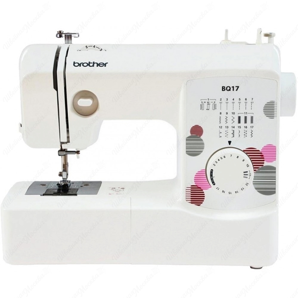 Brother BQ 17 - электромеханическая швейная машина, подходящая для домашнего шитья и ремонта одежды. Особенности включают простой дизайн, широкий функционал и надежность. Имеет 17 встроенных типов строчек, горизонтальный челнок без смазки, тихий звук. Система REVERS позволяет создавать закрепки одним нажатием кнопки. LED-подсветка снижает нагрузку на глаза и подходит для разных типов ткани.