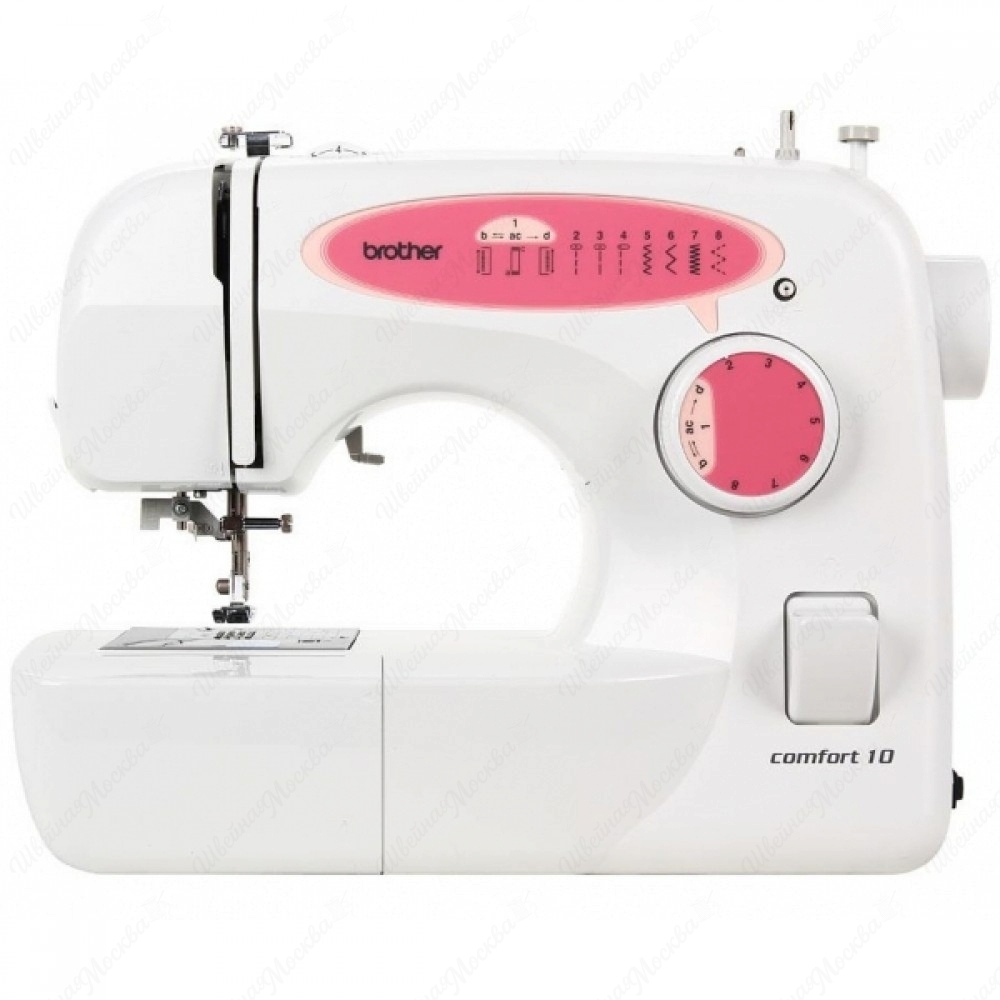 Швейная машина Brother Comfort 10 – это надежная и простая в управлении модель, которая отличается от прочих ярким и необычным оформлением. Несмотря на массу достоинств, приобрести ее можно по доступной цене. В арсенале данной модели имеется 8 различных операций. При помощи дополнительных устройств можно производить штопку, пришивать пуговицы, молнии, в том числе и потайные, создавать бельевые петли. Несмотря на низкую потребляемую мощность, Brother Comfort 10 способна выполнять до 450 стежков в минуту. Она отлично справляется с легкими и средними по плотности тканями. Наличие горизонтального челночного устройства упрощает заправку шпули и делает процесс выполнения работы бесшумным, встроенная лампа накаливания позволяет заниматься шитьем даже в темное время суток, а свободный рукав облегчает обработку мелких деталей одежды.