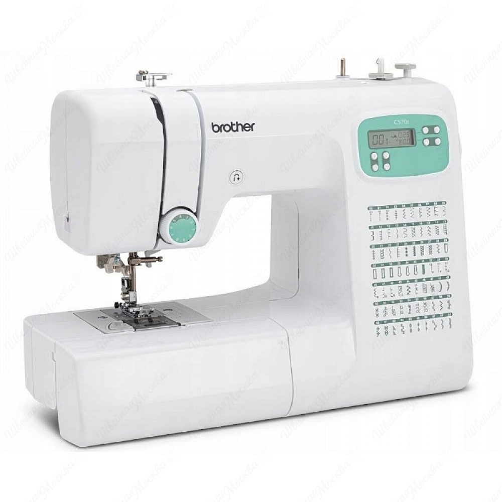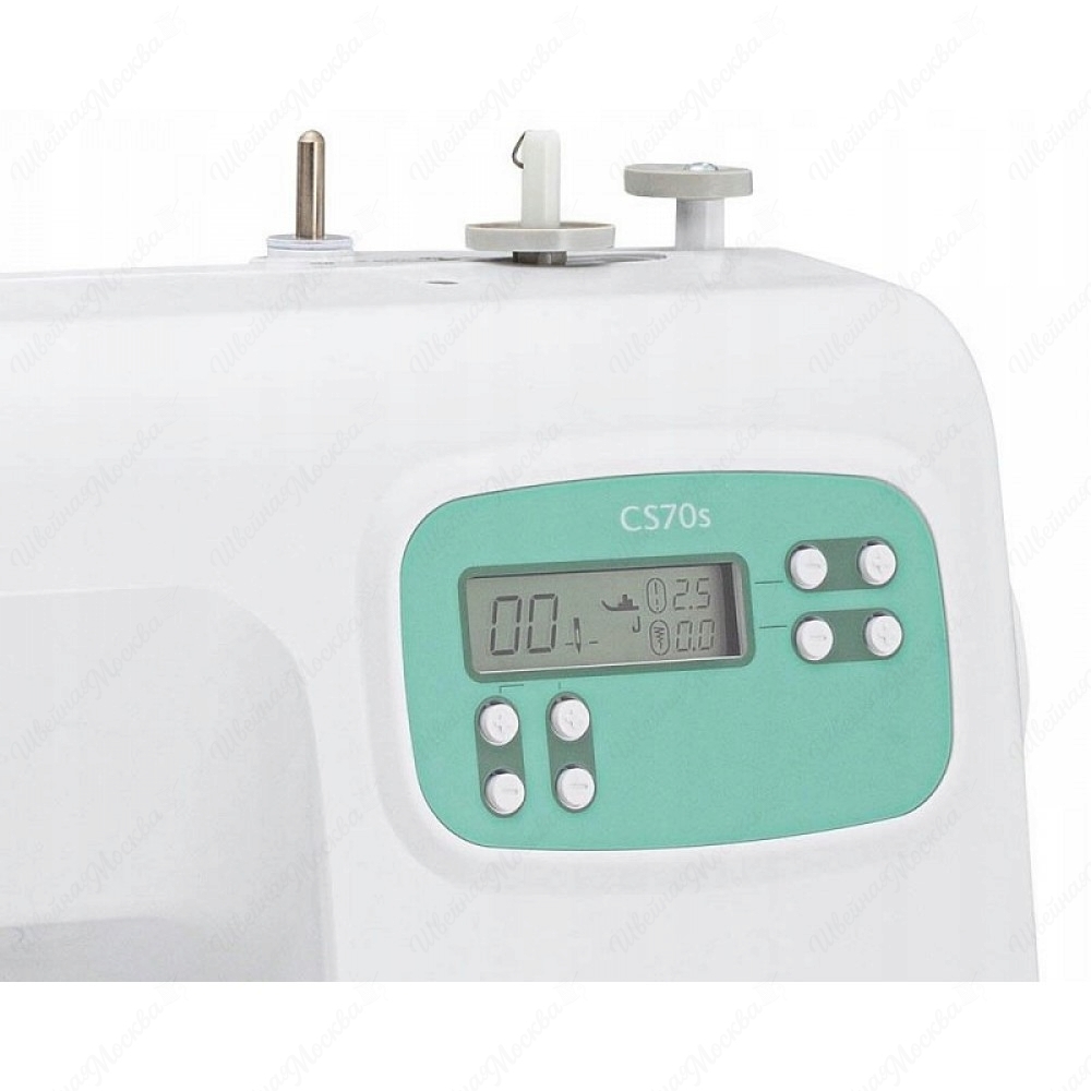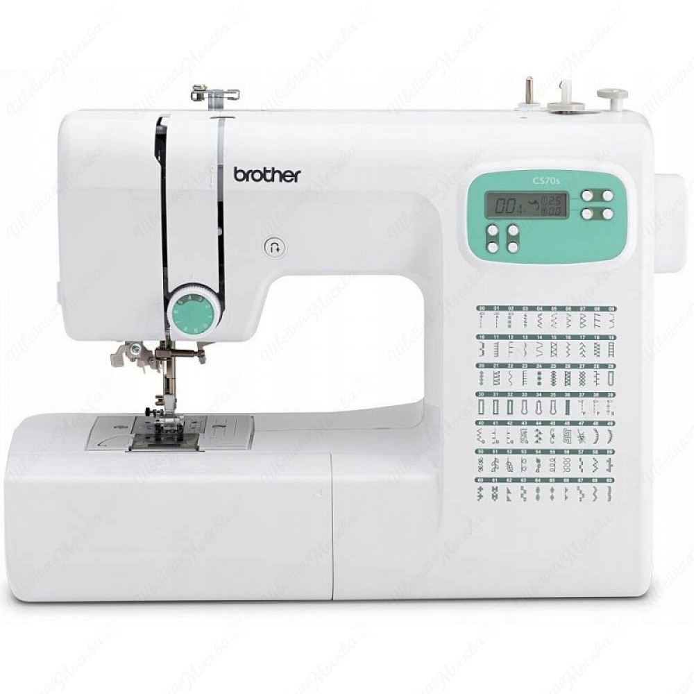 Brother CS70S - новая швейная машина с 70 различными строчками, 7 автоматическими петлями и металлической конструкцией. Включает нитевдеватель, фиксатор стежка, положение иглы, двойное иглование и ограничитель скорости. Коричневый цвет имеет защиту от пришивания при поднятой лапке.