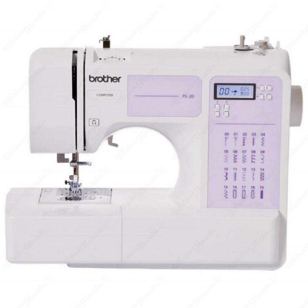 Brother FS 20 – это компьютеризированная модель швейной машины, которая отлично подходит для шитья в домашних условиях. Она отличается широким набором возможностей и доступной ценой. В ее арсенале имеется 20 операций, в число которых входят 3 вида прорезных петель, выполняемых в автоматическом режиме, и 17 видов строк. Максимальная скорость шитья у данной модели составляет 450 стежков в минуту, а потребляемая мощность 40 Вт. С помощью Brother FS 20 можно не только заниматься пошивом и ремонтом текстильных изделий, но и выполнять стежку – это возможно, благодаря 4-сегментоному нижнему транспортеру, который, в случае необходимости, можно отключить. Кроме того, в ней присутствует функция шитья двойной иглой, которую по достоинству оценят рукодельницы. За дополнительный комфорт во время работы отвечают светодиодная подсветка, съемная рукавная платформа и небольшой монохромный дисплей.