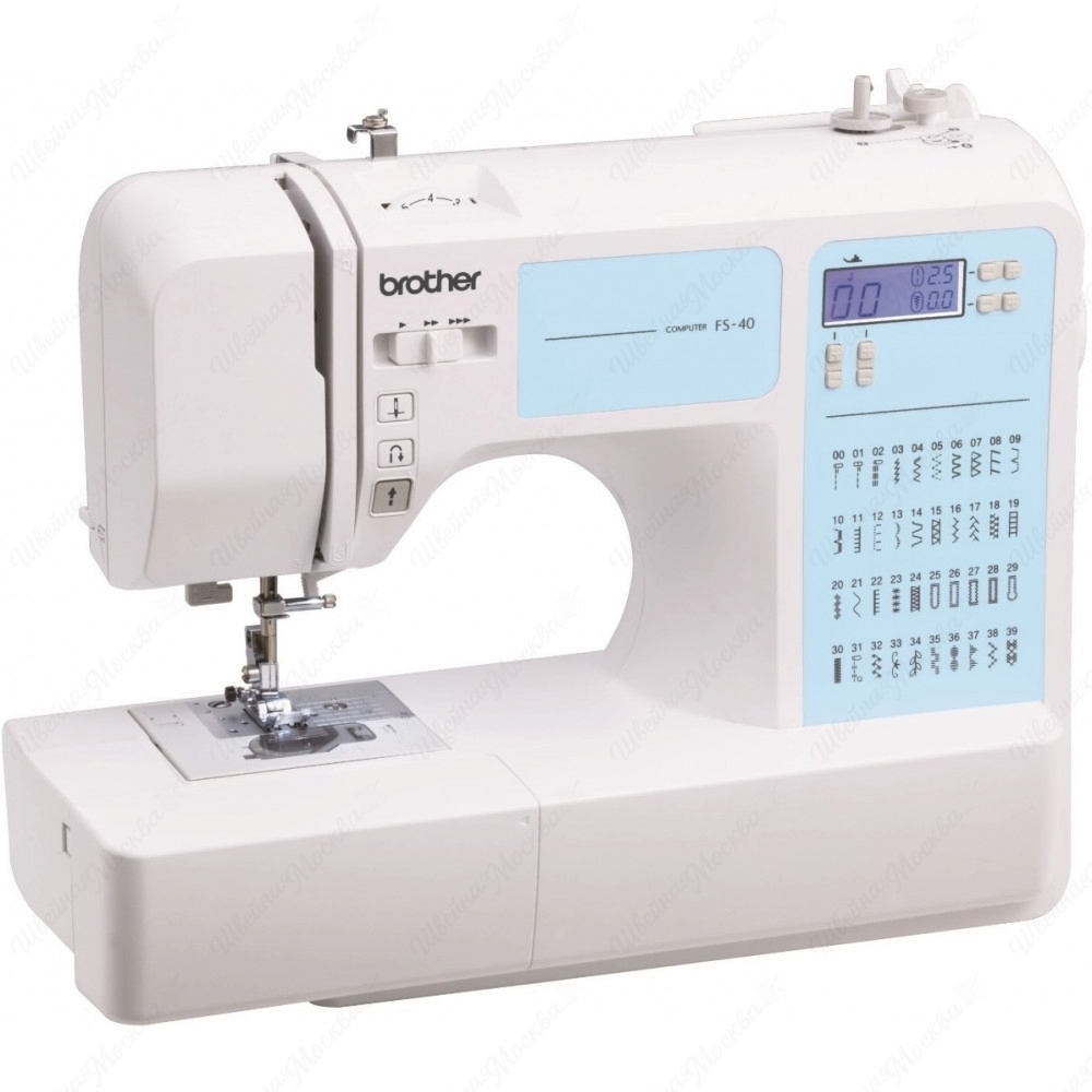 Данная модель способна выполнять 40 различных операций, в число которых входят 5 видов петель и 35 видов строк. С ее помощью можно шить изделия практически из любых видов тканей. Вся необходимая информация о процессе работы отображается на небольшом монохромном дисплее, который, помимо этого, отвечает за настройку некоторых функций. Чуть ниже дисплея располагается таблица, позволяющая легко и быстро выбрать необходимый тип строки. Кроме того, Brother FS 40 оснащена светодиодной подсветкой, снижающей нагрузку на глаза, функцией реверс, отвечающей за создание закрепок, и свободным рукавом, облегчающим обработку мелких деталей.