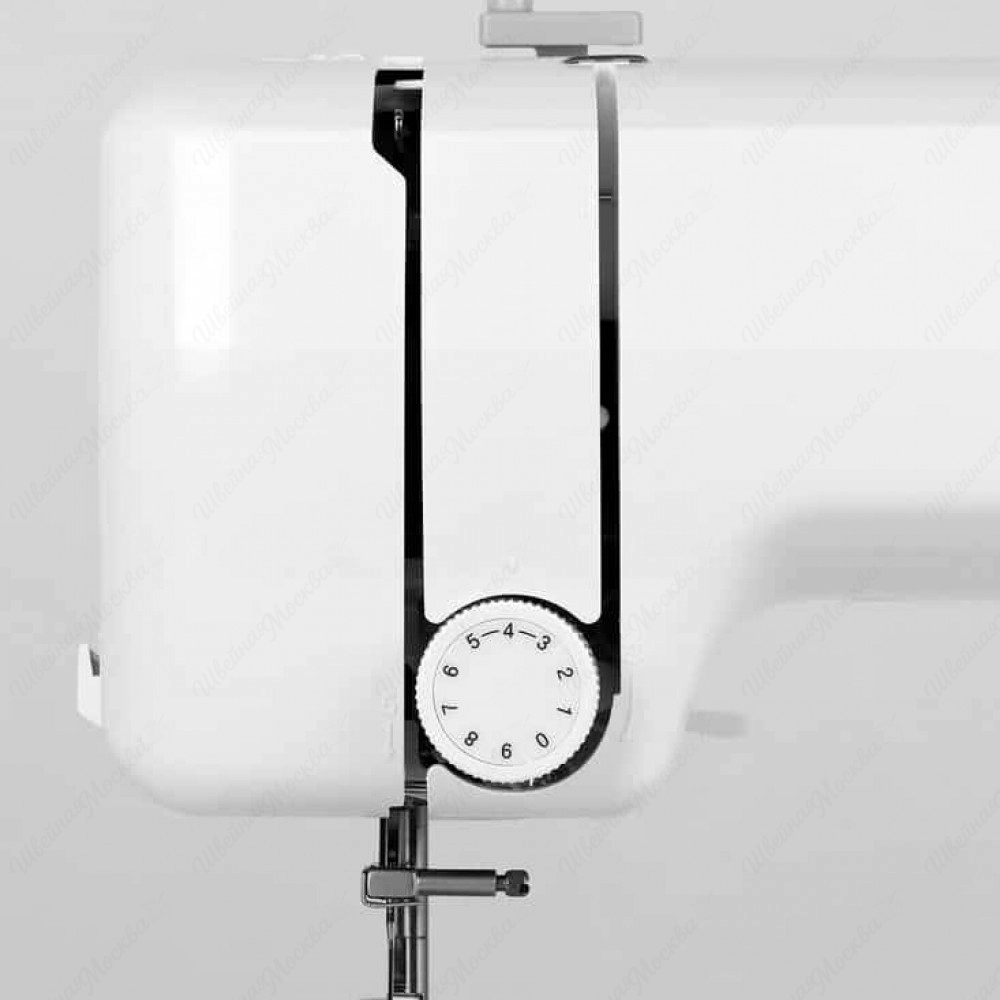 Устройство оснащено горизонтальным челноком, имеет 17 строчек для разных видов шитья, для каждой из которых уже установлены параметры длины и ширины. Вам остается только выбрать наиболее подходящую строчку. На передней панели расположен рычаг реверса для выполнения закрепок и предусмотрена регулировка баланса петель. Отсек для хранения аксессуаров и приспособлений делает конструкцию более удобной. Рабочая область освещается светодиодными лампами.