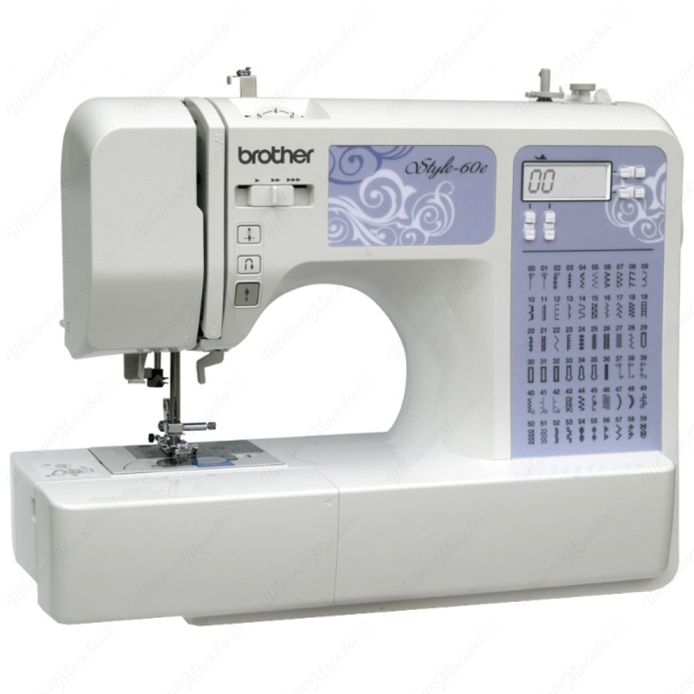 Швейная машина Brother Style 60E – это восхитительная компьютеризированная модель, которая покладисто справляется с пошивом, ремонтом одежды и созданием эксклюзивных композиций и декоров на тканых изделиях. Brother Style 60E выполняет 60 трудоемких операций, в том числе 9 разновидностей петель-автомат, 11 видов строчек с наибольшей длиной стежка, равной 5-ти мм, и максимальной шириной – 7 мм (аппликация, вышивка, пэчворк, квилтинг, прямая, оверлочная, штопка, декоративная, потайная/невидимая, трикотажная, художественная отделка). Бытовая швейная машина с пластиковым основанием (корпусом) имеет диодную подсветку, обеспечивающую комфортный швейный процесс в ночное время. При этом модели Brother Style 60E весом 6 кг и мощностью 42 Вт типично наличие регулятора скорости шитья, функции реверс и информативного монохромного экрана, который позволяет выбрать оптимальные для шитья настройки (длину стежка, тип используемой лапки).