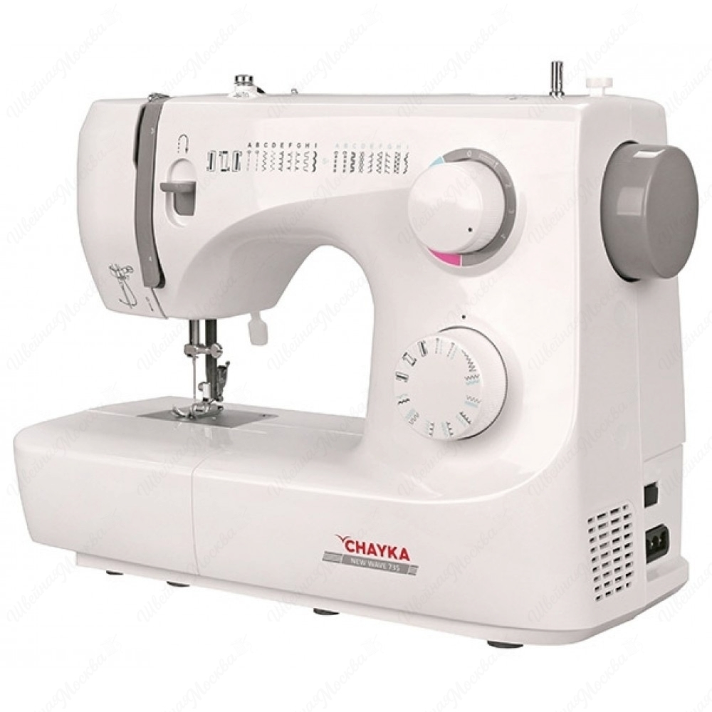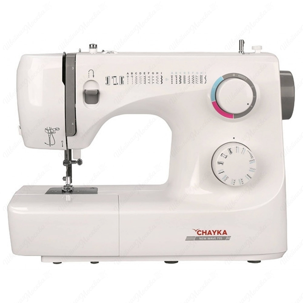 Chayka New Wave 735 выполнена в эргономичном стиле. Арсенал ее возможностей представлен в виде 19 операций, которые отвечают за создание самых необходимых строк и выметывание бельевых петель в полуавтоматическом режиме. Управлением всем функционалом осуществляется через дисковые регуляторы. Кроме того, на передней части корпуса располагается таблица, упрощающая поиск нужной строчки. Качающийся вертикальный челнок, выполненный из металла, существенно повышает качество стежков и обеспечивает бесшумный ход. К дополнительным преимуществам относятся: встроенная подсветка, съемная рукавная платформа и ручное устройство обрезки нити.