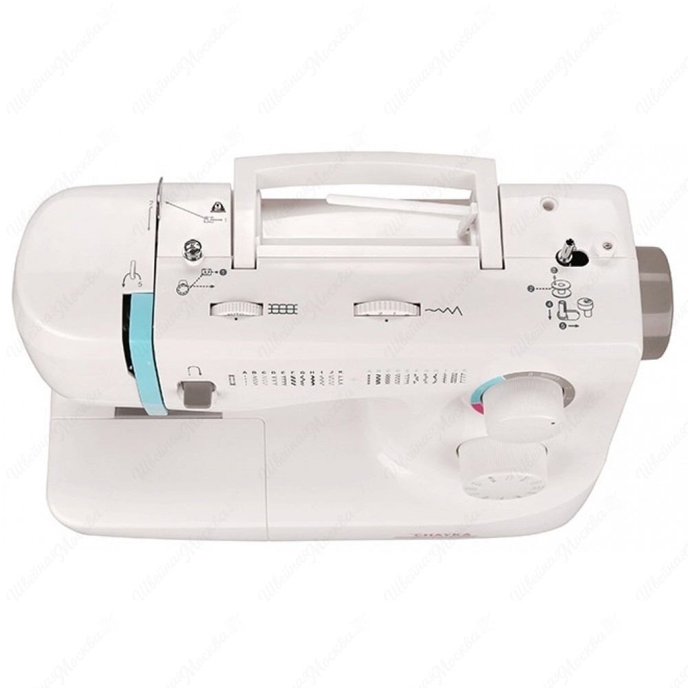 Chayka New Wave 750 одинаково хорошо справляется как с легкими, так и со средними по плотности тканями. Ее функционал представлен в виде 24-х операций, которые отвечают за создание рабочих и декоративных строк. Помимо этого, присутствует возможность выметывания петель бельевого типа в автоматическом режиме. Выбор необходимой опции и ее детальная настройка осуществляются через дисковые регуляторы, расположенные на корпусе. К дополнительным преимуществам данной модели относятся: нитевдеватель, яркая подсветка рабочей зоны, съемная рукавная консоль и ручное устройство обрезки нити.