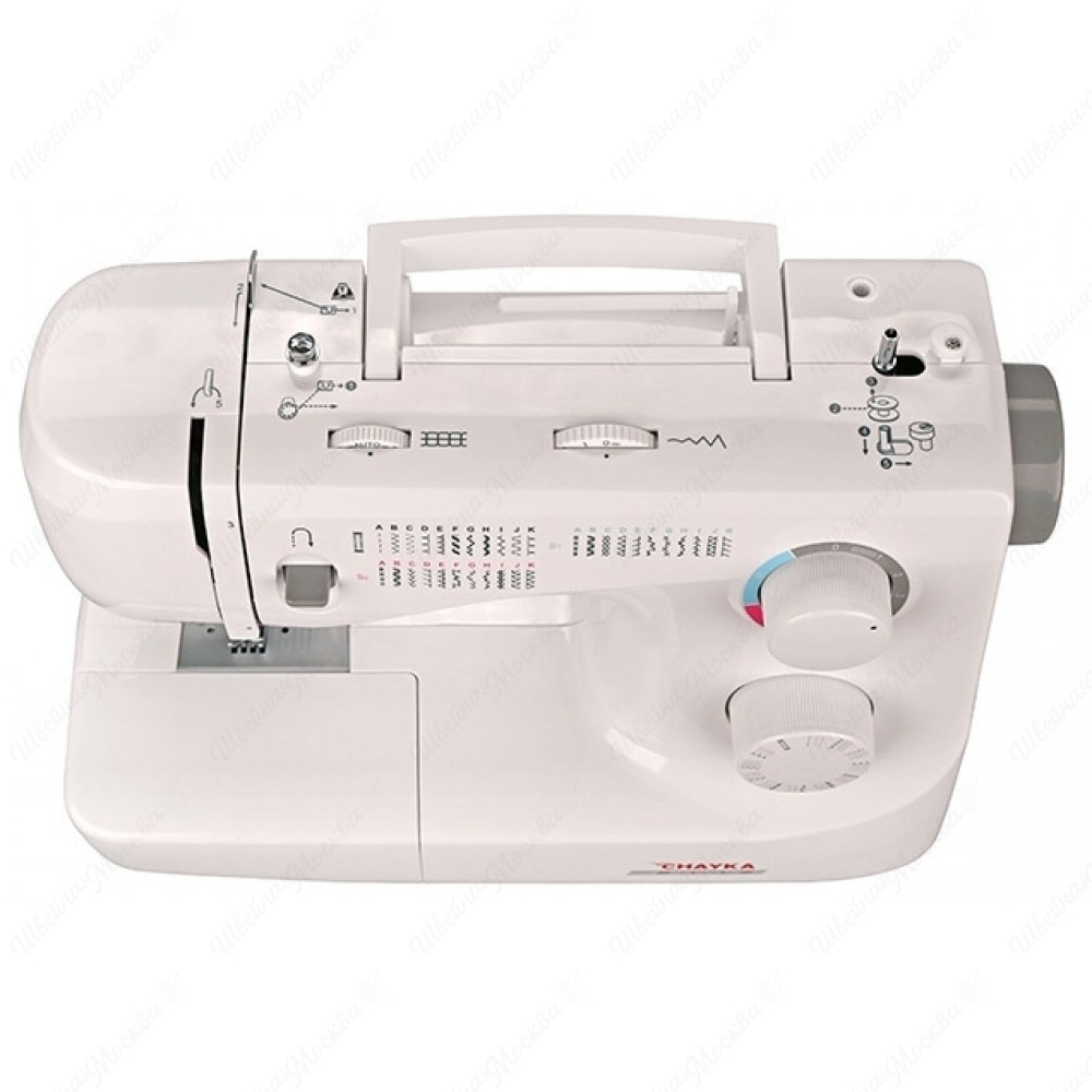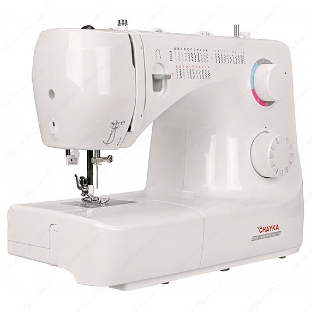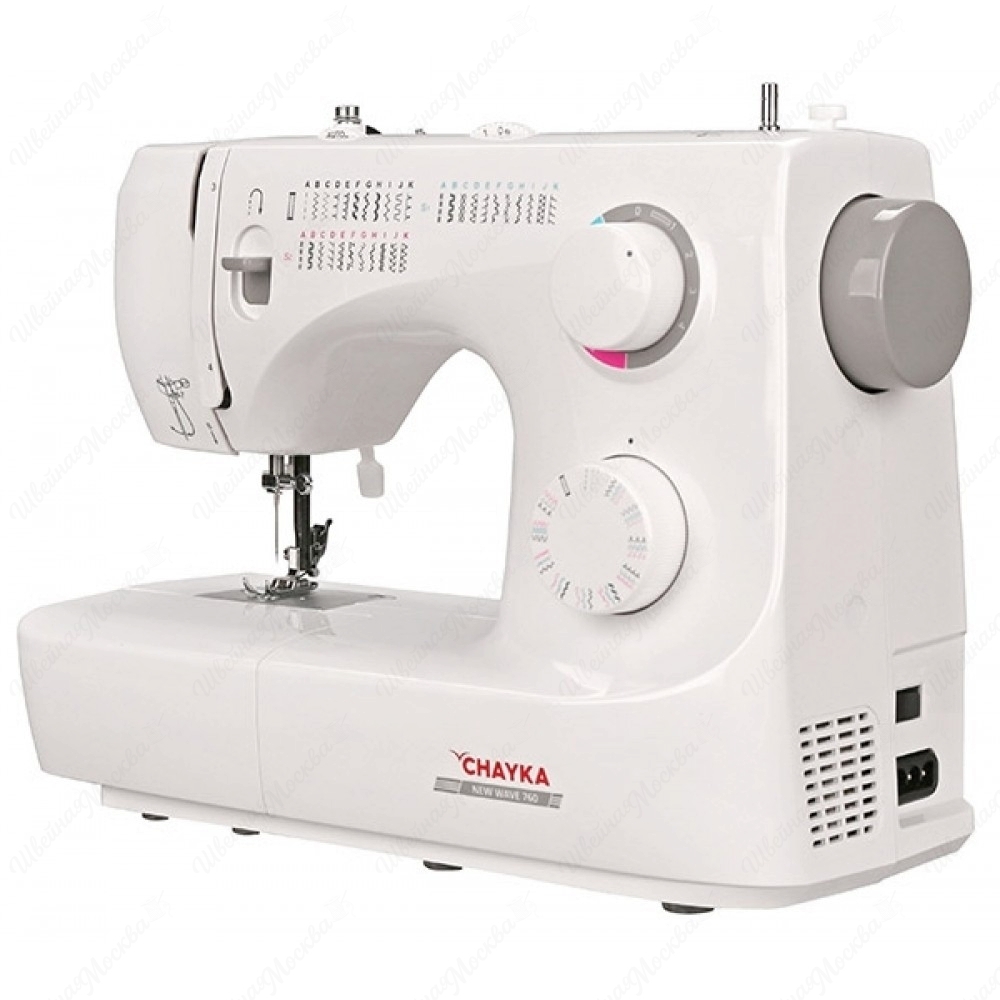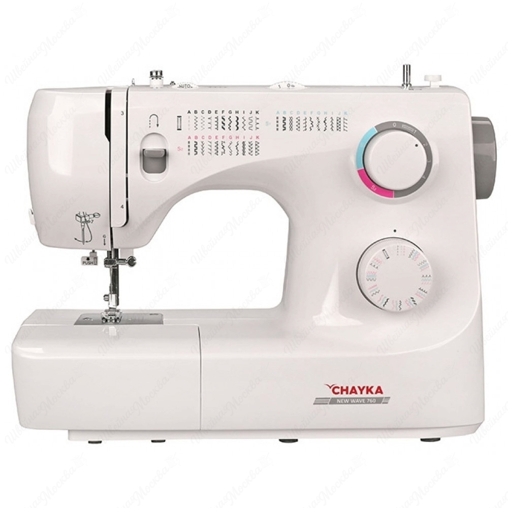 Корпус данной модели выполнен из высокопрочного пластика белого цвета, который минимизирует уровень шума, производимого во время шитья. Арсенал возможностей агрегата состоит из 34-х операций, которые отвечает за выметывание бельевых петель в автоматическом режиме и создание многочисленных строк. Управление всеми опциями осуществляется при помощи дисковых регуляторов, расположенных на передней части корпуса. Chayka New Wave 760 справляется с деликатными, легкими и средними по плотности тканями. К ее дополнительным преимуществам относятся: встроенная подсветка, нитевдеватель, ручное устройство обрезки нити и съемная рукавная консоль.