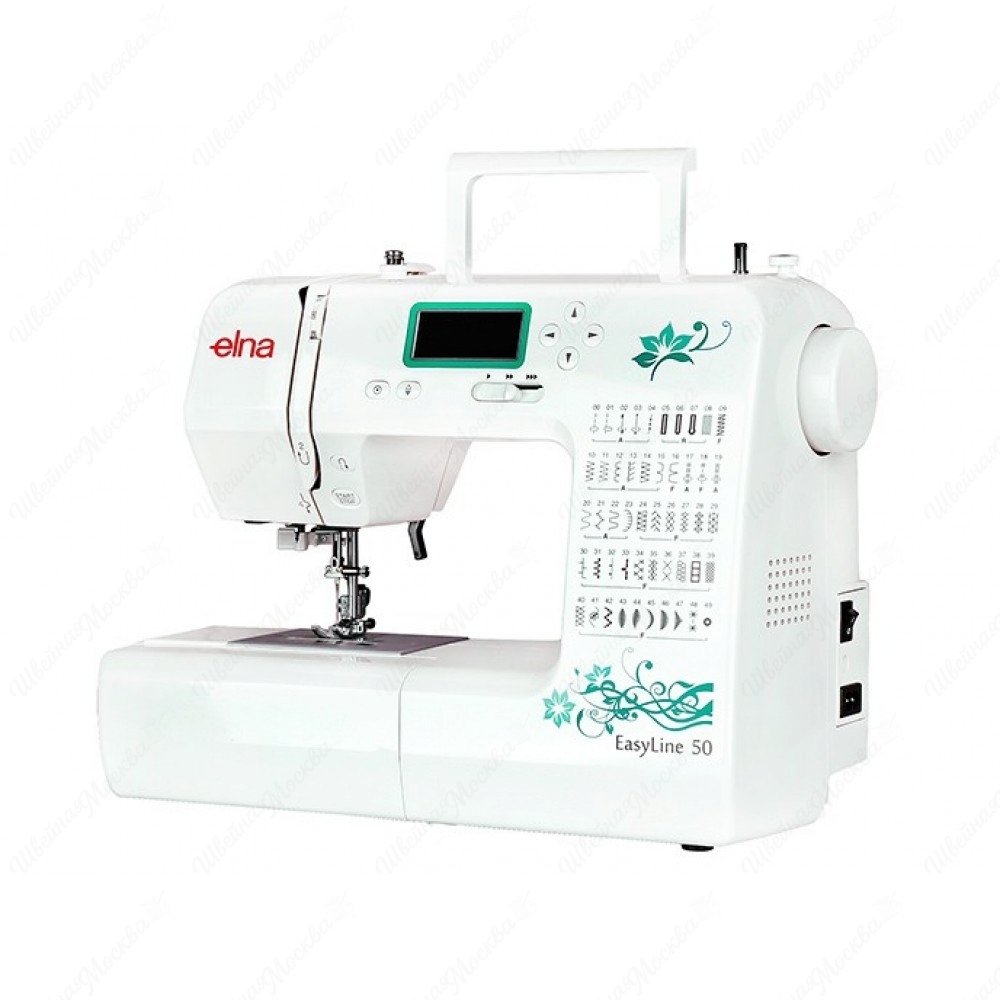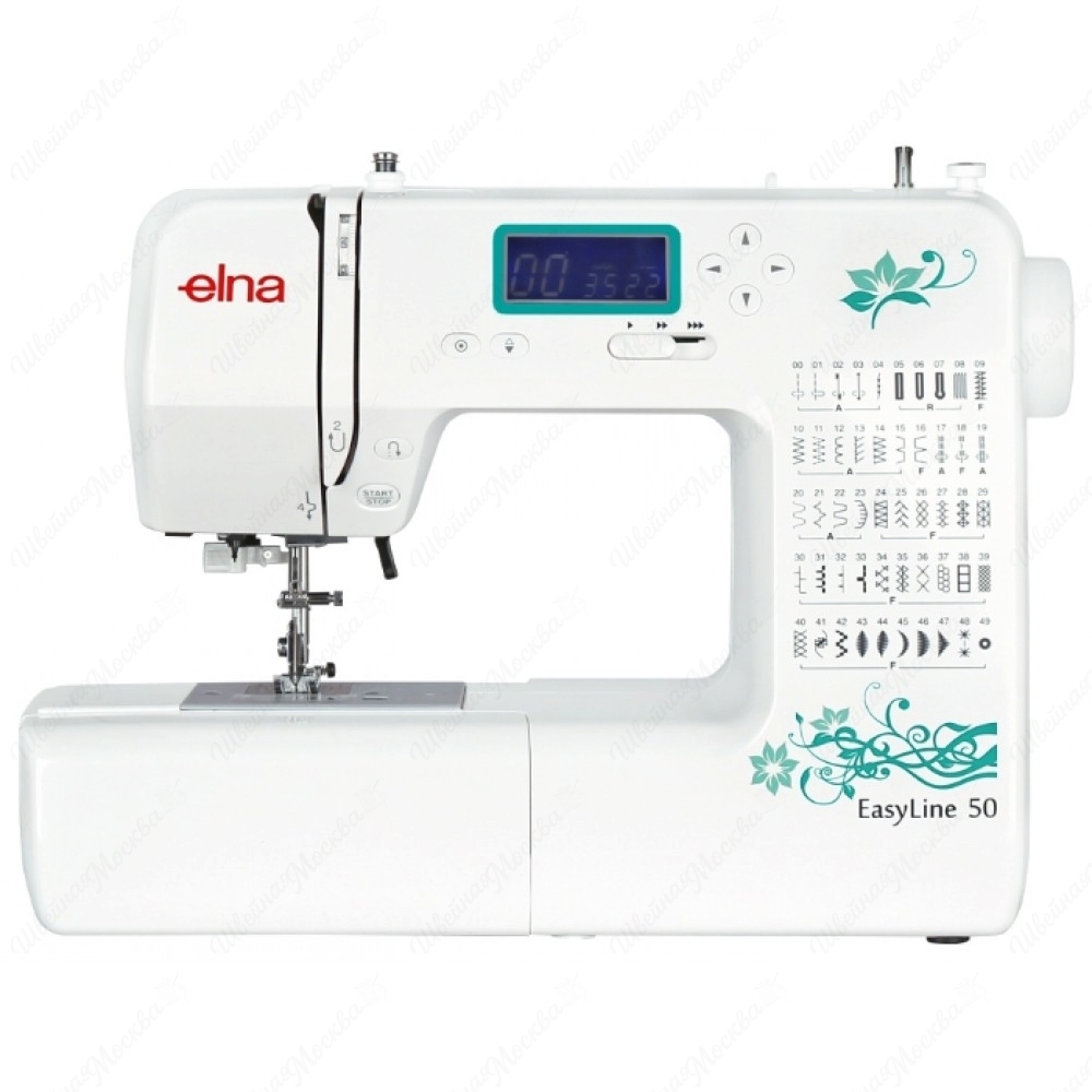 Оснащенная встроенным информационным дисплеем и бесшумным ротационным челноком, расположенным горизонтально, электронная швейная машина Elna Easyline 50 станет лучшим выбором не только для домашнего, но и профессионального использования. Модель имеет разъемную рабочую поверхность с рукавной платформой, устройство, стабилизирующее усилие при проколе ткани. Данный агрегат выполняет полсотни операций – в наличии автовыметывание четырех видов петель по заданной программе, художественные и обычные швы, работа в технике квилтинг, штопка. Швейная машина elna easyline 50 работает со скоростью 650 строчек/мин, укомплектована светодиодной подсветкой, присутствуют нитевдевные и нитеобрезные приспособления. Лапка подъемная, с диапазоном высоты до 16 мм, длина и ширина каждого стежка регулируется, до 5 и 7 мм соответственно.