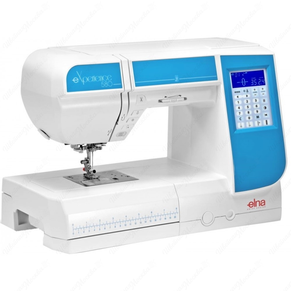 Elna eXperience 580 — это компьютеризированная швейная машина для домашнего использования. Она оснащена горизонтальным челноком, светодиодной подсветкой и автоматическим нитевдевателем. Эта модель выполняет 120 операций, включая оверлочные, потайные и эластичные строчки. Максимальная скорость шитья составляет 600 стежков в минуту, а максимальная ширина стежка — 7 мм. Elna eXperience 580 обладает рядом функций, упрощающих процесс шитья: автоматическая намотка шпульки, регулировка скорости на корпусе, позиционирование иглы и регулятор давления лапки на ткань. В комплекте идут съёмная рукавная платформа и устройство для обрезки нити.