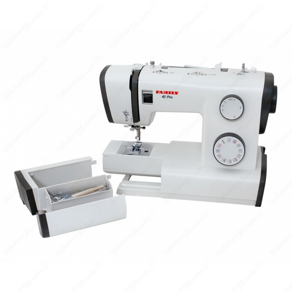 Швейная машина Family 40 Pro – надежная и простая в эксплуатации швейная машина, прекрасно подходящая как для начинающих, так и для опытных любителей шитья. Устройство предлагает 40 видов встроенных строчек, включающих прямые, зигзагообразные, фигурные и эластичные швы, а также автоматический режим выполнения петель. Модель оборудована регулятором скорости шитья, опцией «свободный рукав» для работы с узкими деталями и яркой светодиодной лампой, освещающей рабочую поверхность. Family 40 Pro снабжена встроенным нитевдевателем и нитеобрезателем, что облегчает процесс шитья. Благодаря прочному металлическому корпусу и качественным металлическим деталям данная модель станет надежным помощником на долгое время.
