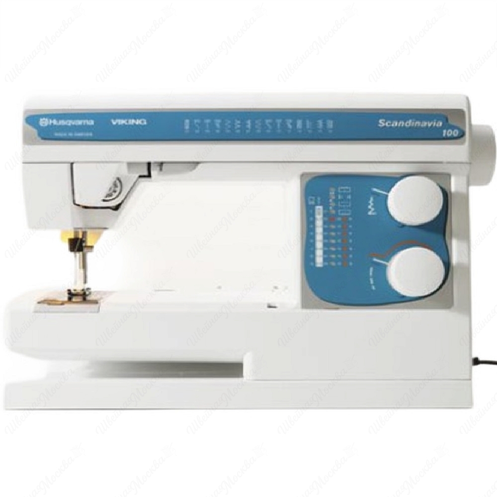 Швейная машина Husqvarna Scandinavia 100 - очень удобная, качественная, простая в обращении и надежная машинка. Эта модель оснащена горизонтальным челночным устройством, благодаря чему снижена вибрация и вероятность запутывания нити. Высокая мощность и усилие прокола не зависящее от скорости шитья позволяют комфортно работать с самыми тяжелыми и капризными тканями. Машина позволяет выметывать аккуратные бельевые петли в полуавтоматическом режиме. При этом обе колонки петли выполняются в одном направлении. По набору строчек машина занимает промежуточное положение между моделями Husqvarna Prelude 370 и 350. В отличие от машин серии Prelude, Husqvarna Scandinavia 100 не комплектуется жестким чехлом и органайзером для шпулек и лапок. В 2005 году эта машина сменила на конвейере очень популярную модель прошлых лет - Husqvarna Lena.