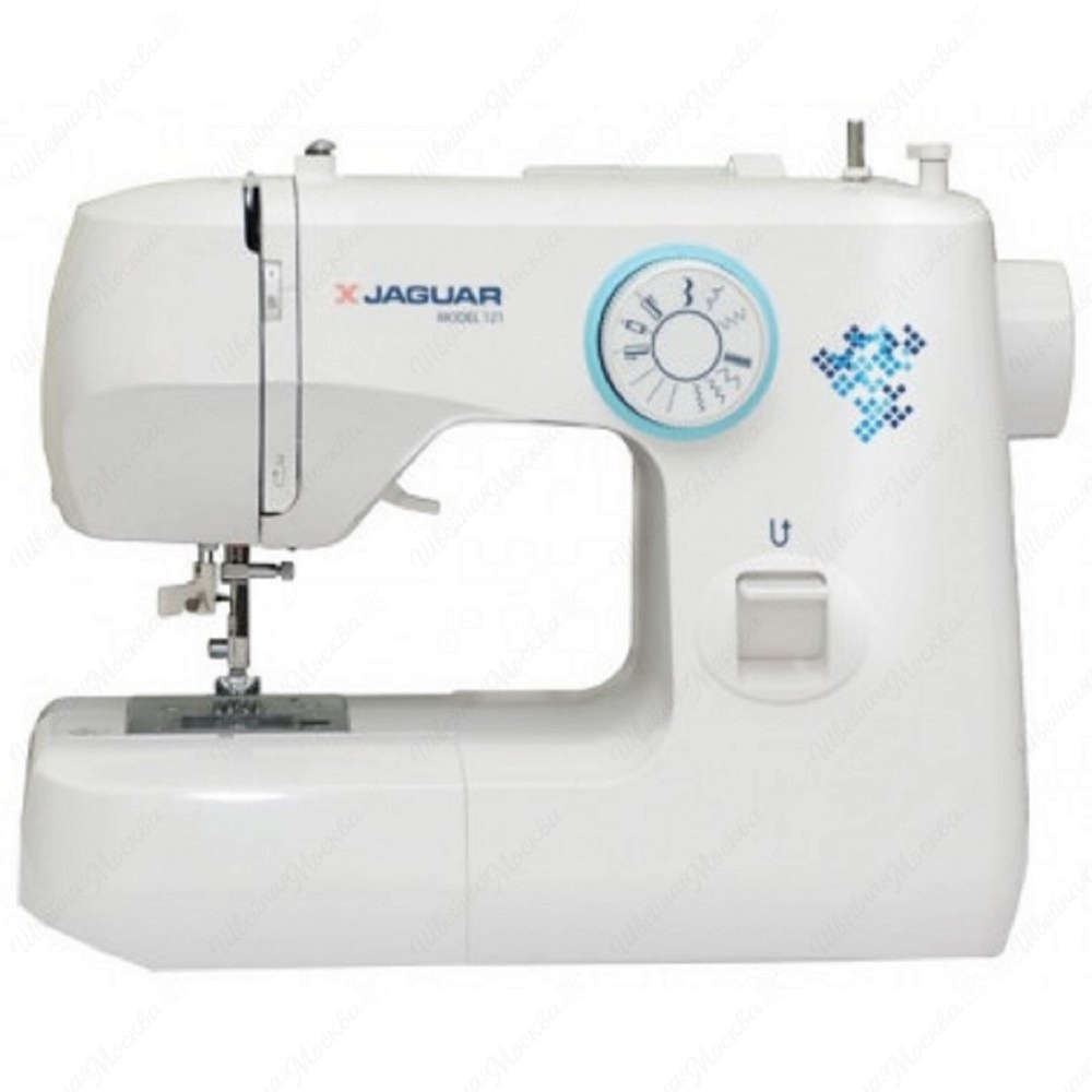 Данная модель способна выметывать бельевые петли в полуавтоматическом режиме и выполнять несколько самых необходимых видов строк. Выбор необходимой опции осуществляется при помощи дискового переключателя, на поверхность которого нанесены изображения доступных строк. Jaguar 121 отлично справляется с легкими и средними по плотности тканями. За бесшумное и качественное шитье отвечает горизонтальный ротационный челнок, а 3-сегментный нижний транспортер облегчает обработку деликатных материалов. К дополнительным преимуществам швейной машины относятся: автоматический нитевдеватель, ручное устройство обрезки нити, встроенная подсветка, функции обратного хода и F.A.S.T.