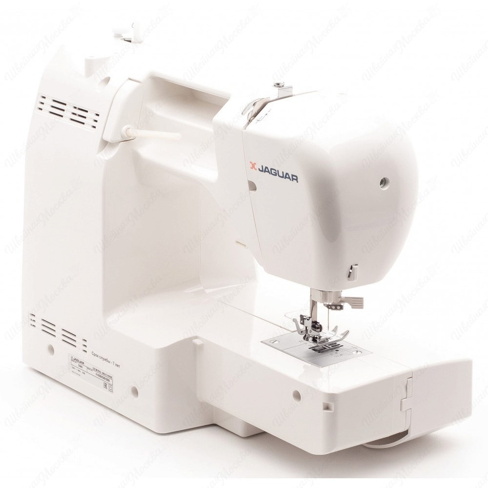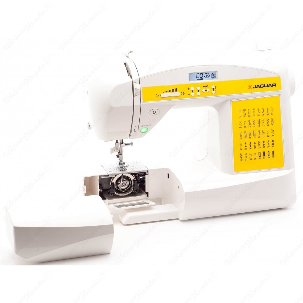 Швейная машина Jaguar 590 – функциональная компьютеризированная модель с небольшими габаритами и удобным управлением. Чтобы задать нужный режим для обработки конкретного изделия, можно воспользоваться электронными подсказками. Все данные отображаются на мониторе, располагающемся на корпусе. Аппарат умеет выполнять основные виды строчек, а также обметочные и декоративные. Швейную машину Jaguar 590 купить стоит не только тем, кто шьет дома время от времени, но и тем, кто занимается этим профессионально. Высокопроизводительное и доступное по цене оборудование оснащено вертикальным челноком, поэтому работает без шума и вибрации. Аппаратура снабжена встроенной лампой и съемной рукавной платформой, что обеспечивает комфорт во время работы.