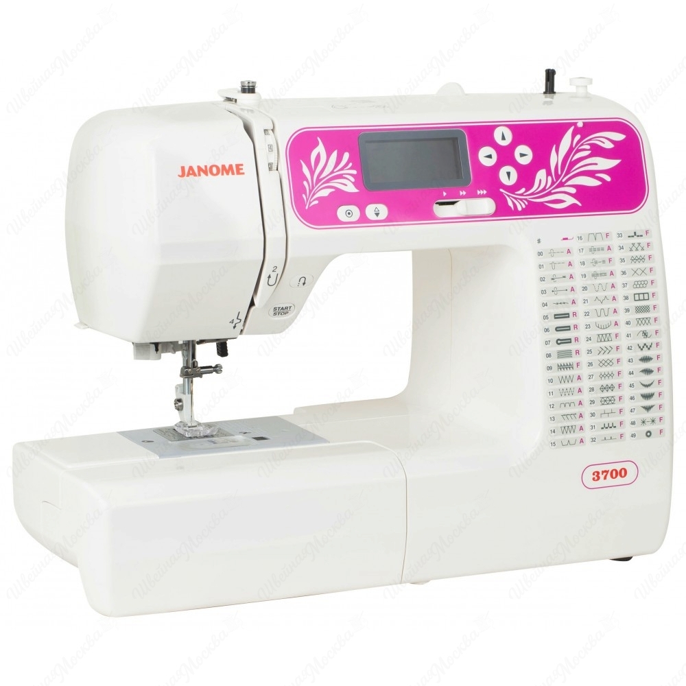 Компьютеризированная швейная машина Janome 3700 выполняет 50 операций, оснащена инструментом для автовыметывания петель. Здесь доступны фигурные, декоративные, прямые, оверлочные строчки и штопка. Переключение между режимами выполняется в одно касание. За бесшумную работу отвечает ротационный челнок, имеющий горизонтальное положение в конструкции агрегата.